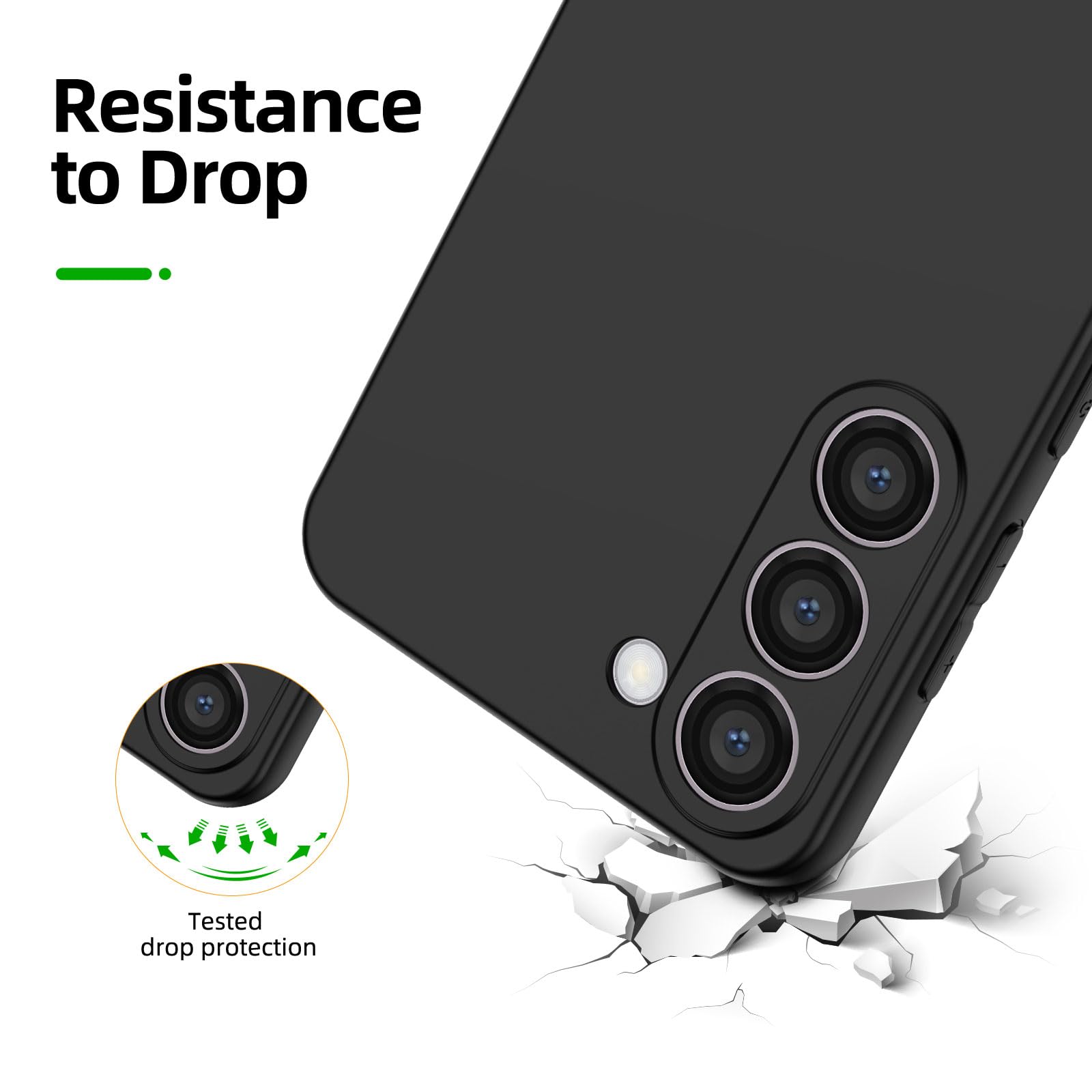 Coque ultra fine en silicone noir et protection d’écran en verre trempé pour Samsung Galaxy S23 Plus.