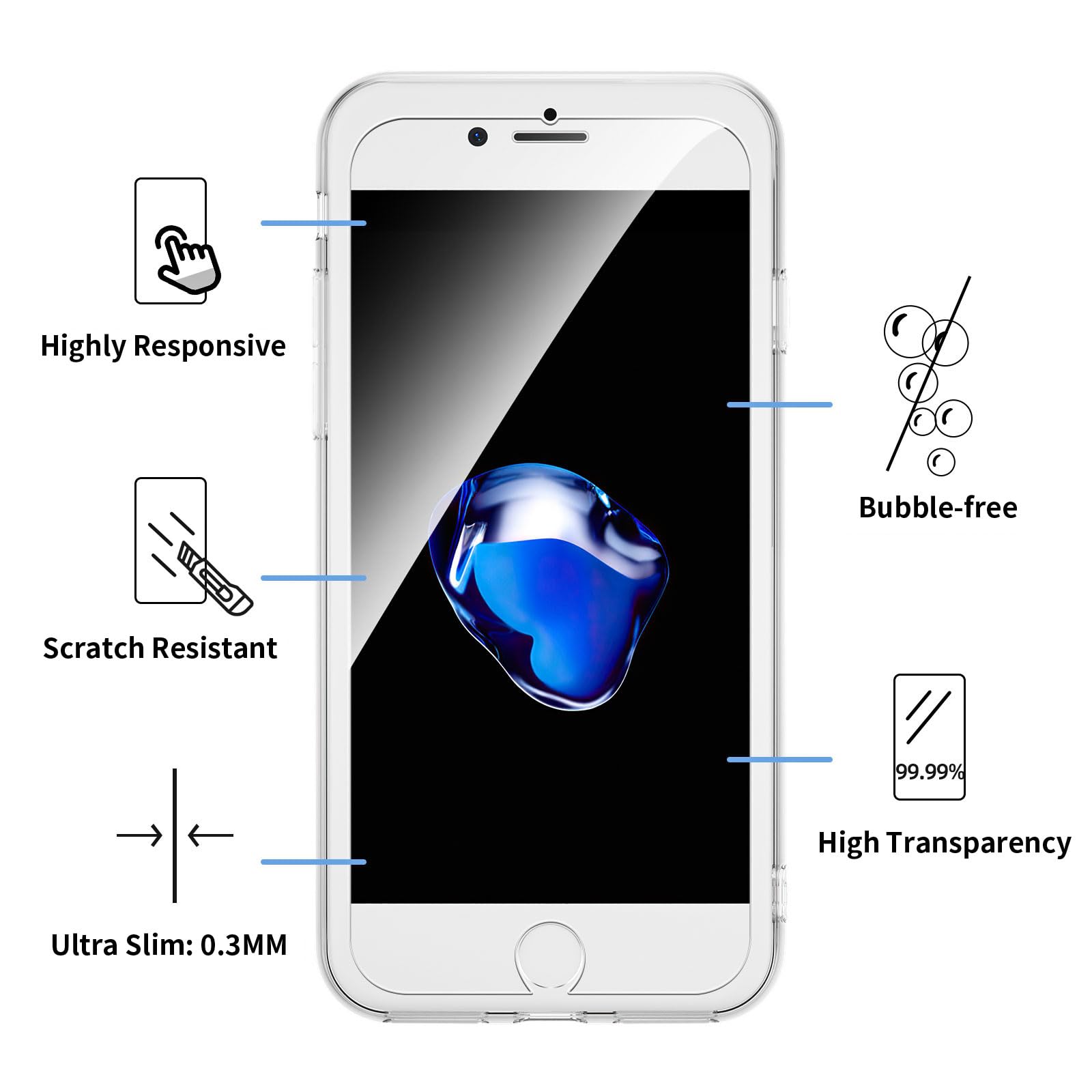 - Le lot contient 2 pièces de protection d’écran en verre trempé pour iPhone 7 /8/ SE 2022 et une coque transparente pour iPhone 7, iPhone 8 . Procure une protection maximale.