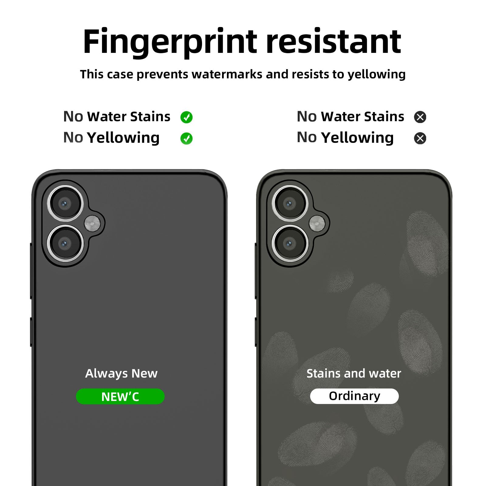 La coque noire mate est fabriquée à partir de silicone et de PC de haute qualité, offrant une texture douce et soyeuse qui repousse les taches et les empreintes digitales. Elle est ultra mince et légère, garantissant une prise en main confortable et un soutien pour la charge sans fil. Cette coque protège votre appareil des rayures et des chocs quotidiens, tout en ajoutant une touche de sophistication avec sa finition mate.