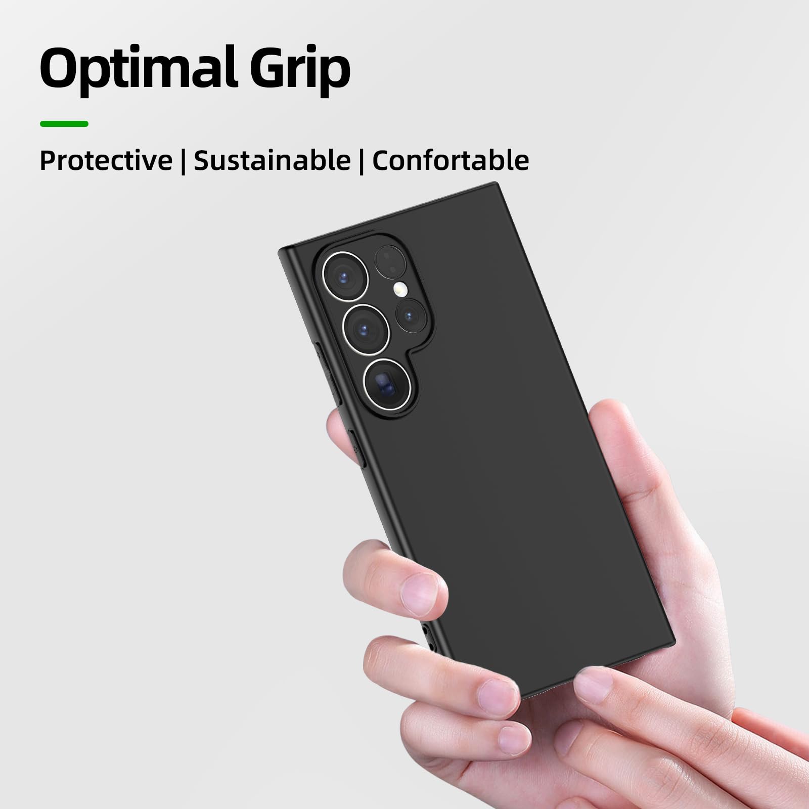 Coque ultra fine en silicone noir et protection d’écran en verre trempé pour Samsung Galaxy S24 Ultra.
