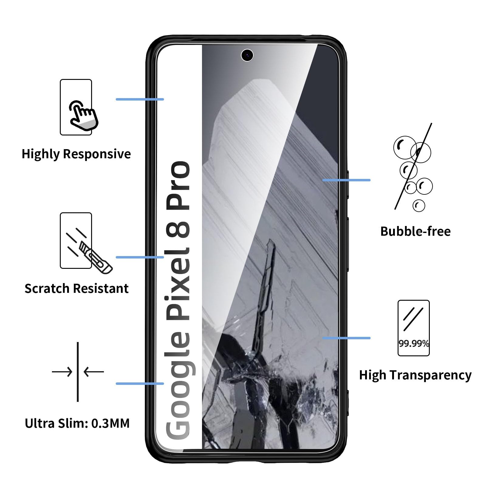 - Le lot contient 2 pièces de protection d’écran en verre trempé pour Google Pixel 8 Pro et une coque noir pour Google Pixel 8 Pro. Procure une protection maximale.