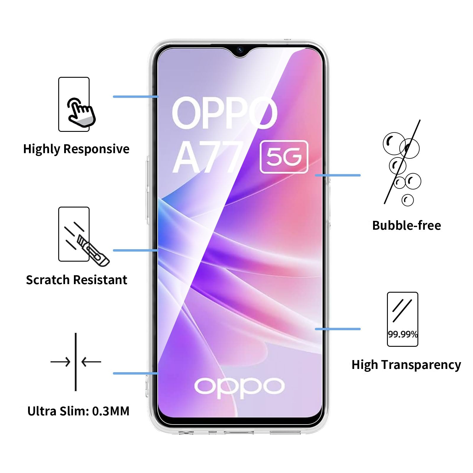 Coque ultra transparente en silicone pour Oppo A77 5G avec protection d’écran en verre trempé.