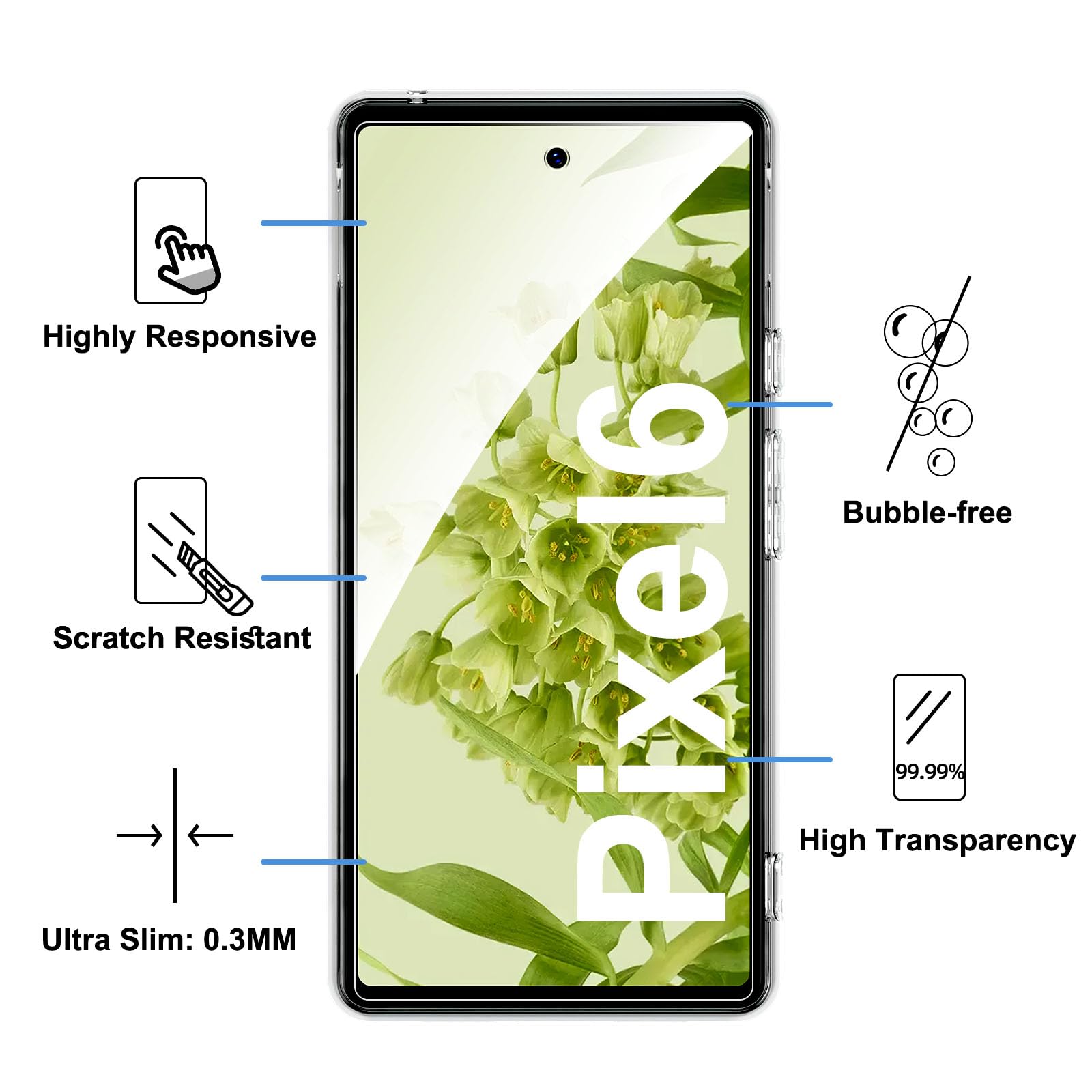 - Le lot contient 2 pièces de protection d’écran en verre trempé pour Google Pixel 6 et une coque transparente pour Google Pixel 6. Procurez une protection maximale.