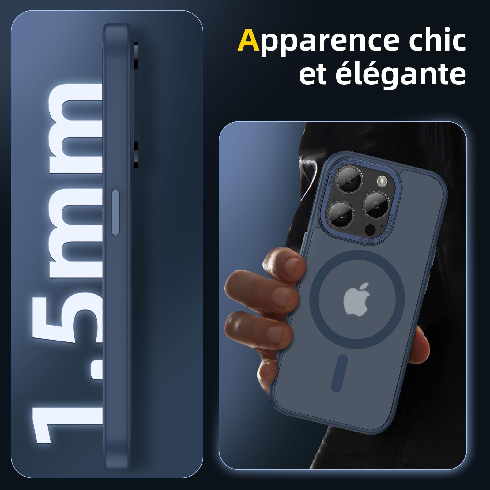 Coque magnétique pour iPhone 14 Pro avec compatibilité MagSafe, protection militaire et finition anti-traces.
