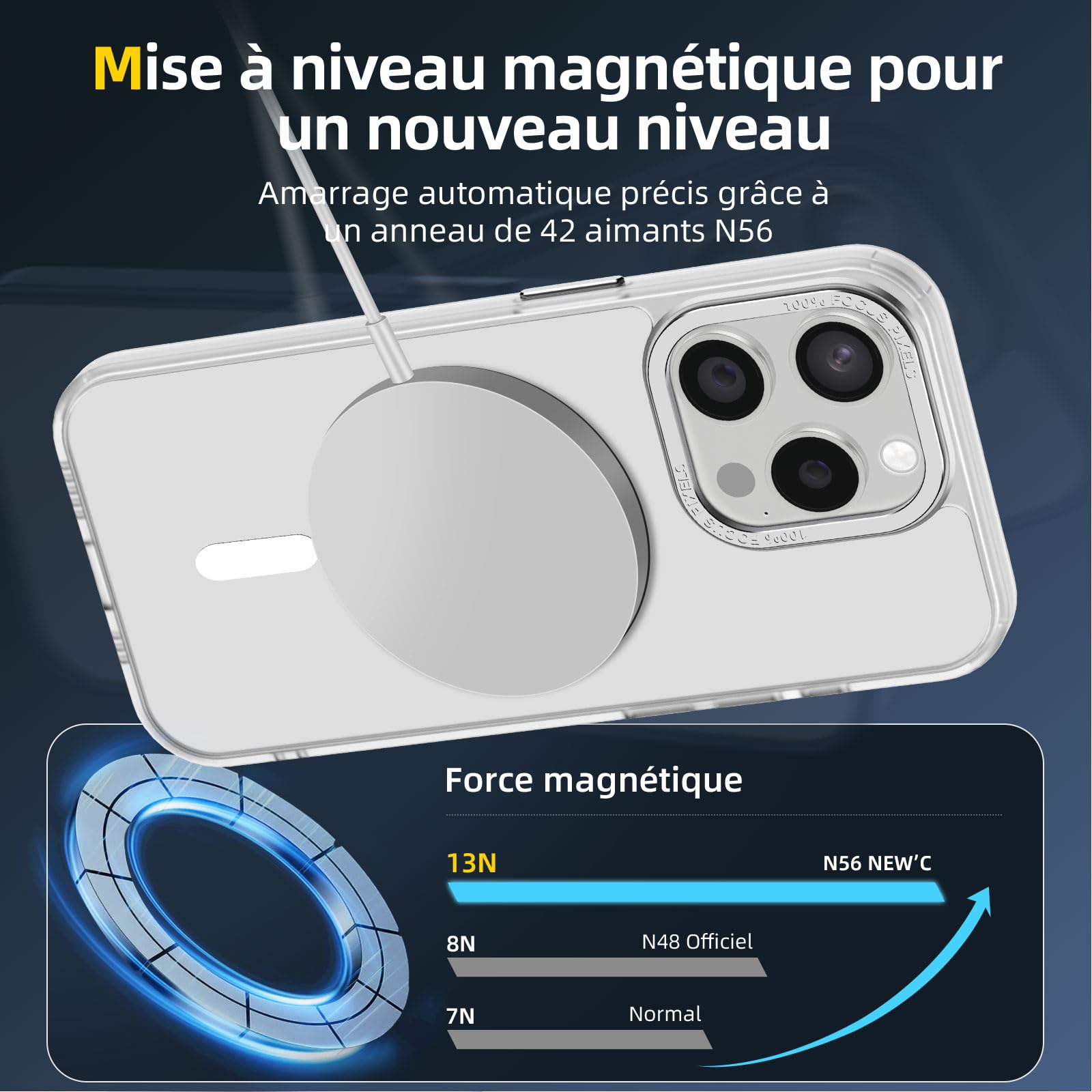 • Verrouillage magnétique ultra-puissant : Équipée de 42 aimants N56 de haute performance, cette coque offre une puissance magnétique augmentée de 50%, assurant une fixation stable et rapide de votre iPhone 15 Pro (6,1 Pouces) avec les accessoires MagSafe, même sur les routes les plus accidentées.