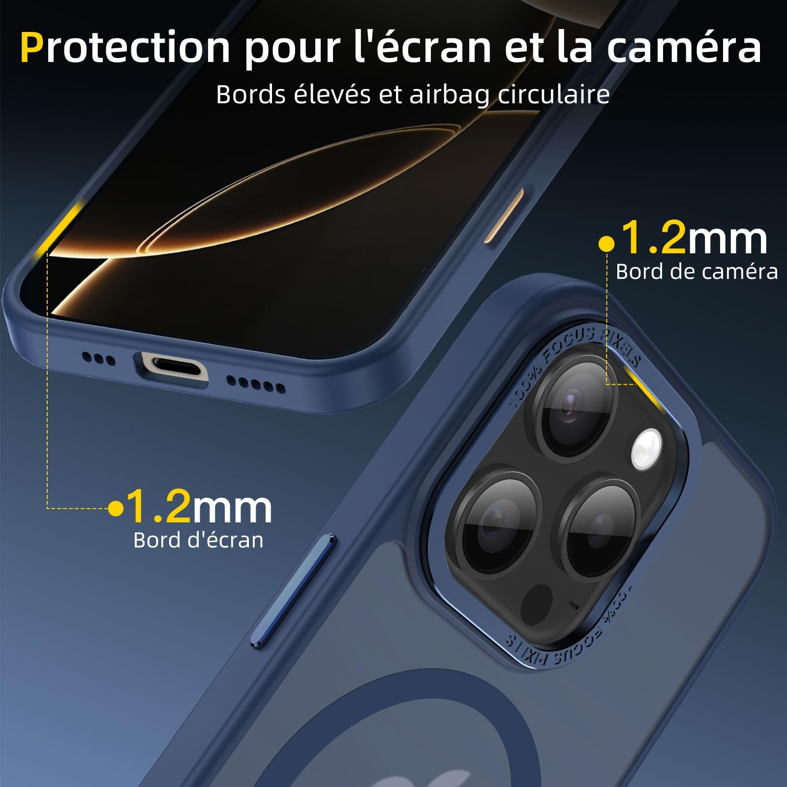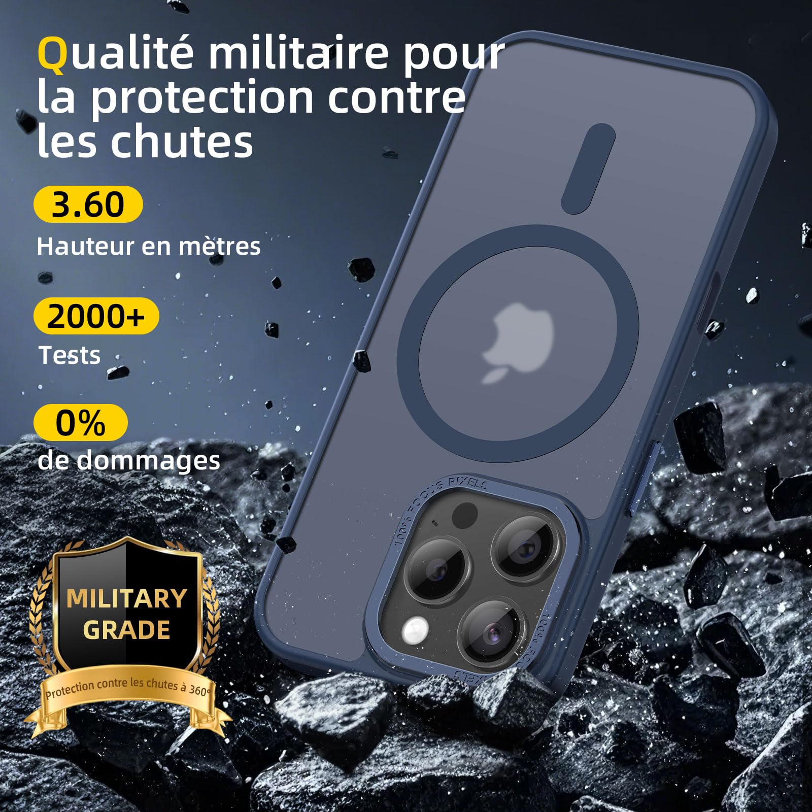 Coque magnétique pour iPhone 16 Pro avec compatibilité MagSafe, protection militaire et finition anti-traces.
