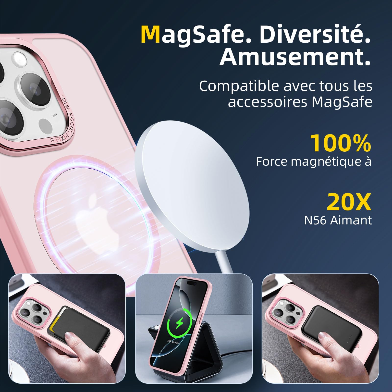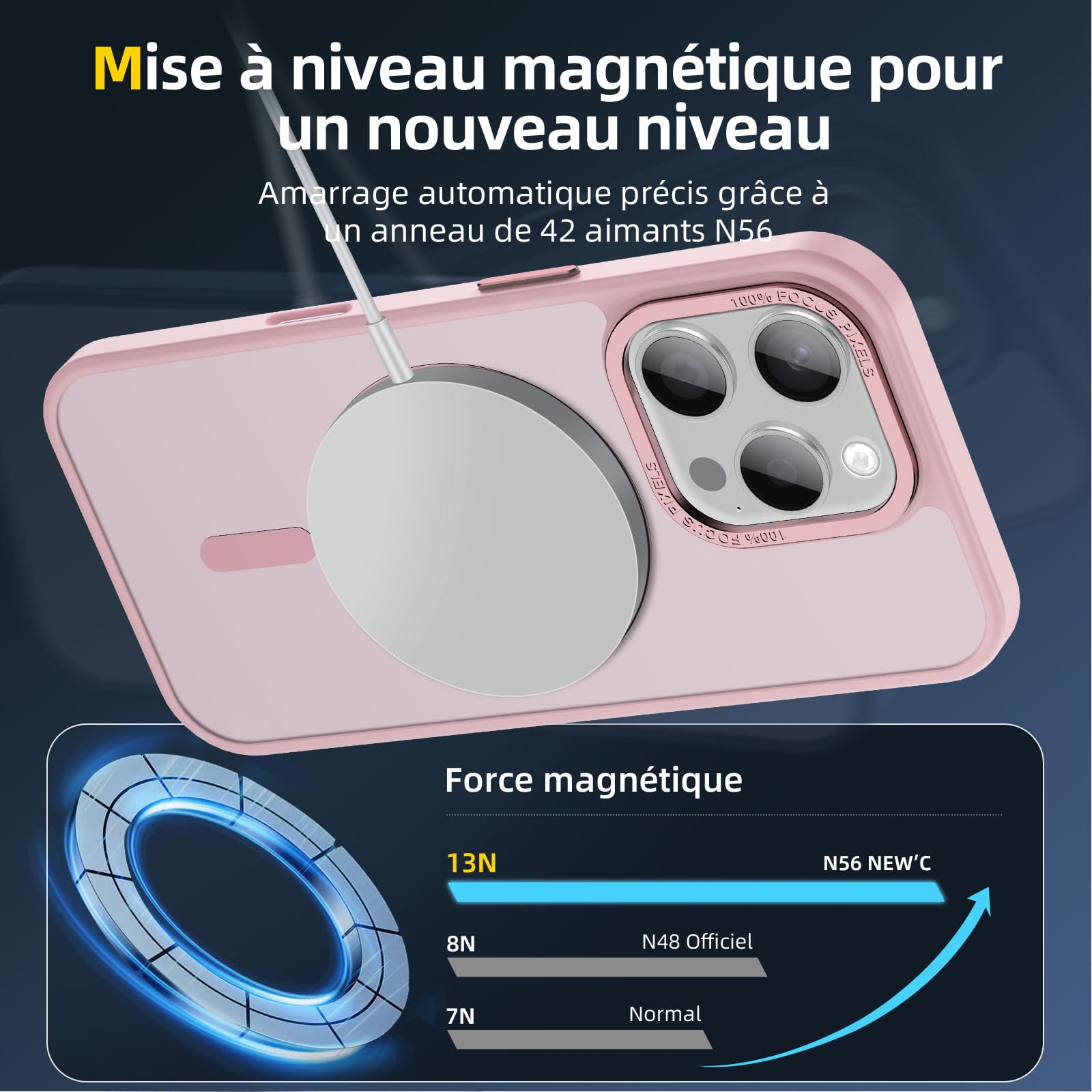 Coque magnétique pour iPhone 16 Pro avec protection militaire et compatibilité MagSafe.