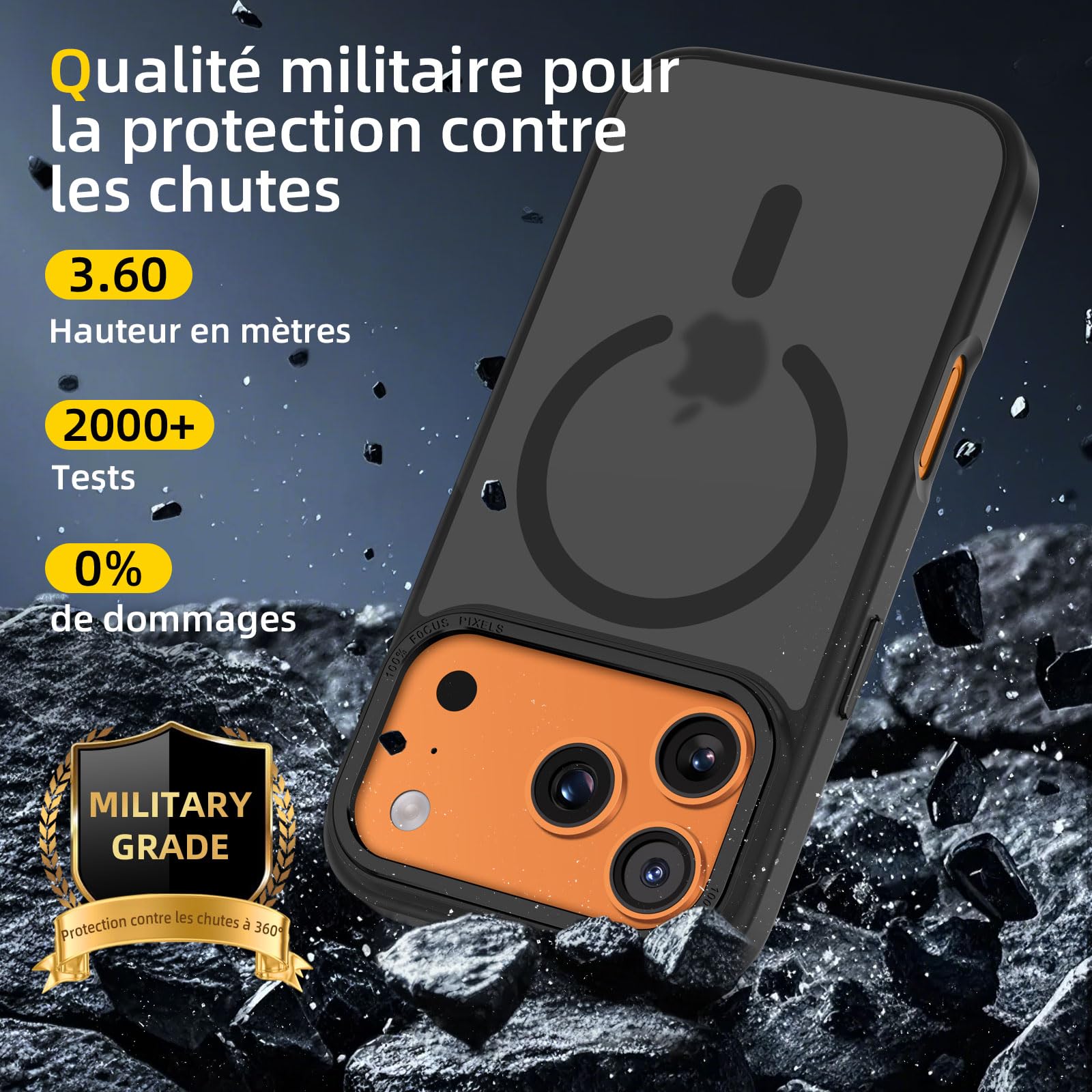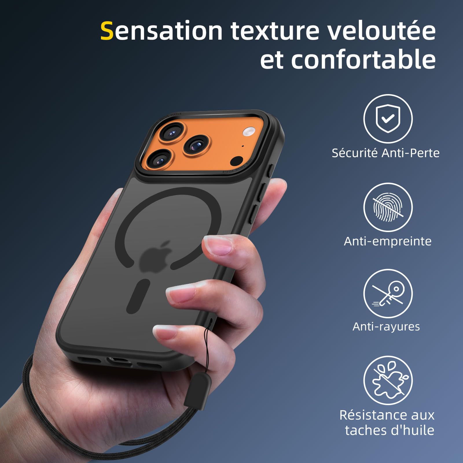 Coque magnétique pour iPhone 17 Pro Max, compatible MagSafe, antichoc avec protection militaire, finition mate noire.