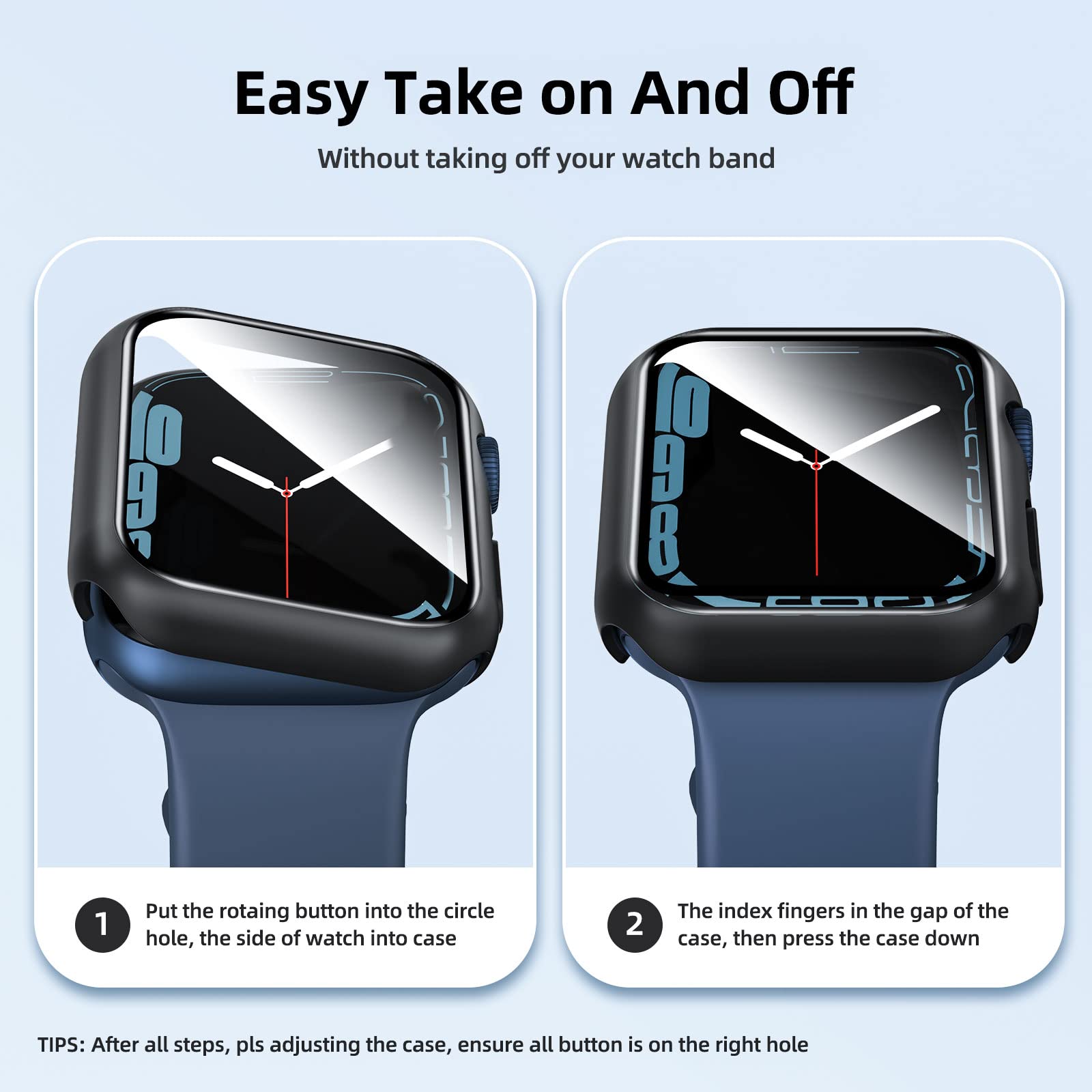 - Le lot contient 2 pièces de coque noir avec protection d’écran en verre trempé intégré pour Apple Watch 41mm Serie 8/7. Procurez une protection complète.