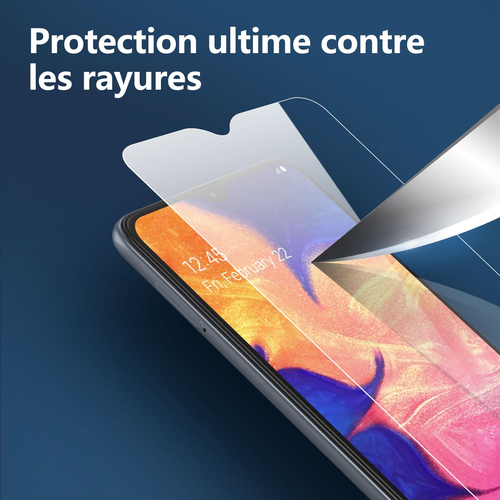 Protection d’écran en verre trempé pour Samsung Galaxy A10, A10s et M10, offrant une dureté de 9H et une transparence HD.