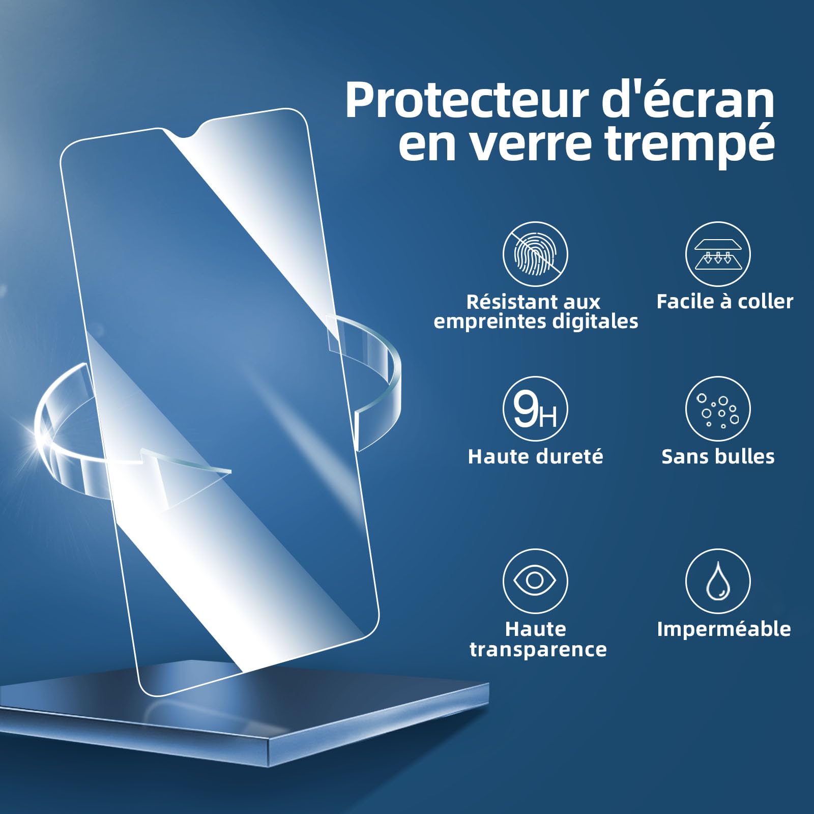 - Fabriqué à partir de verre trempé premium haute qualité, 0,33 mm épaisseur et des bords arrondis. Solution de protection idéale : Extrêmement dure, protège l’écran du téléphone des chocs et des dégâts. Oléophobe: il a un revêtement oléophobique qui empêche les empreintes digitales et d’autres contaminants et rend le film facile à nettoyer.