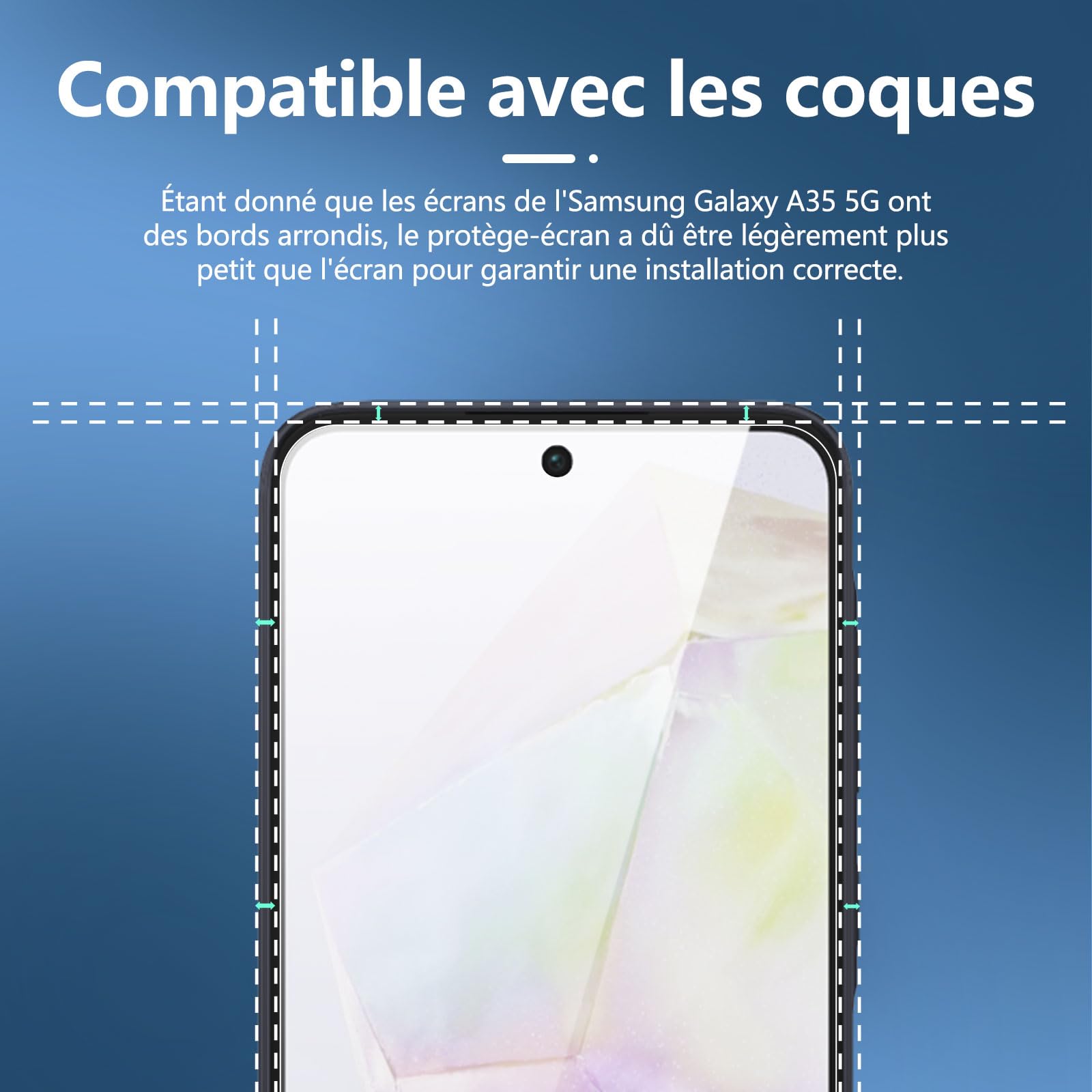 R : Oui, ce Protection d’écran Verre trempé Galaxy A35 5G est parfaitement compatible avec : Galaxy A35 5G.