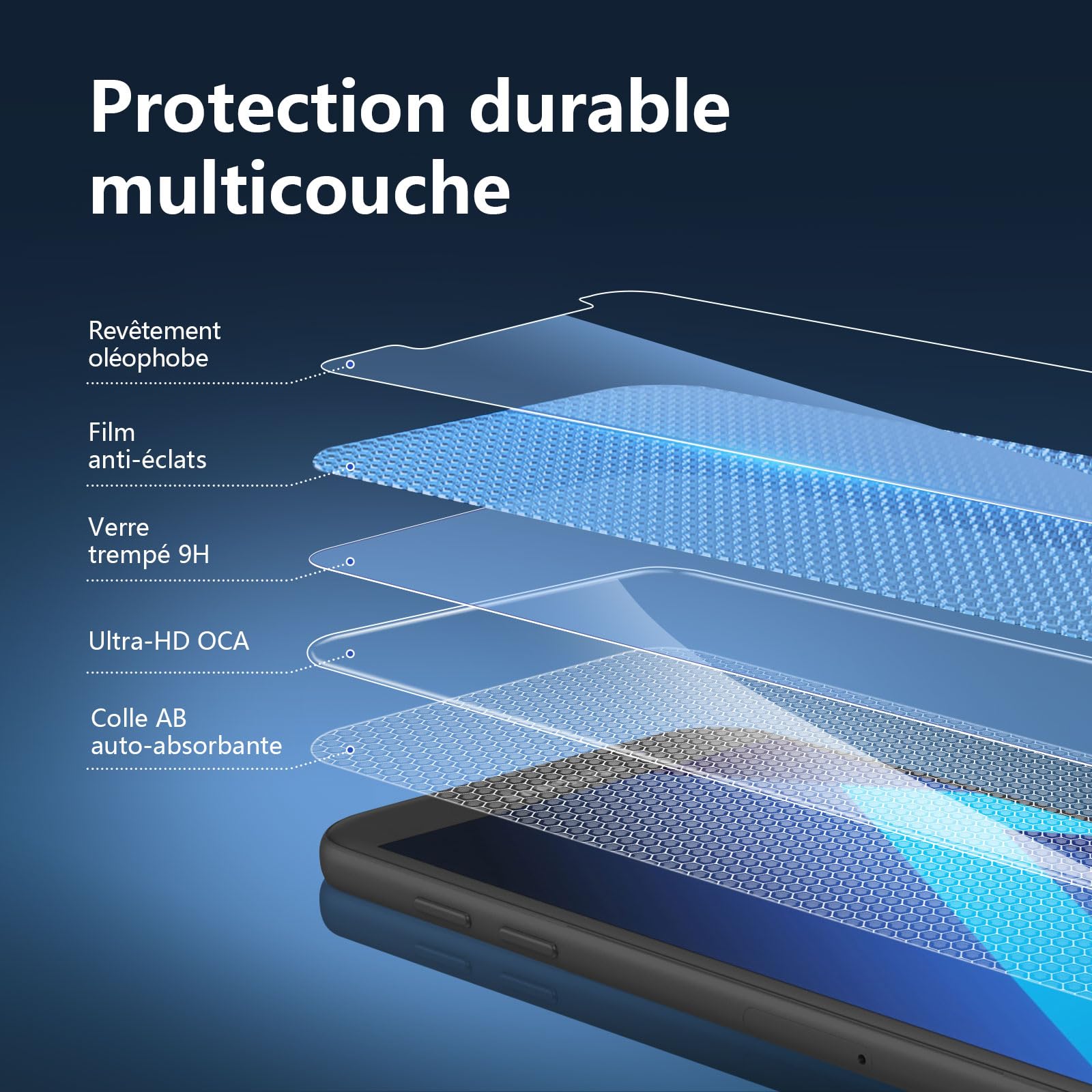 L’installation est un jeu d’enfant grâce à la technologie sans bulles, vous permettant de poser la protection sans laisser de traces ni de poussière. Le revêtement oléophobique empêche les empreintes digitales et autres contaminants, assurant ainsi un écran toujours propre et facile à nettoyer.