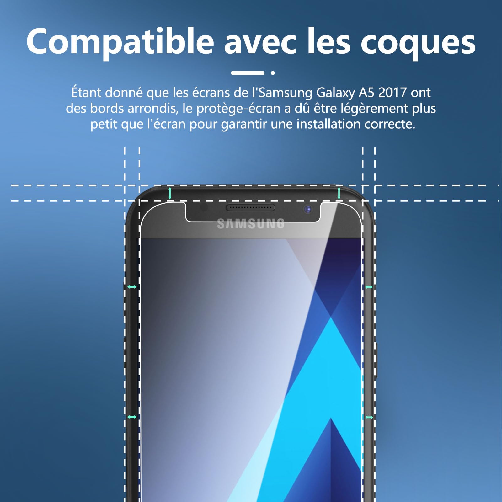 - Lot de 3 Verre Trempé Samsung Galaxy A5 2017 (SM-A520F), Très grande dureté: résiste aux égratignures jusqu’à 9H . Haute-réponse et une grande transparence.