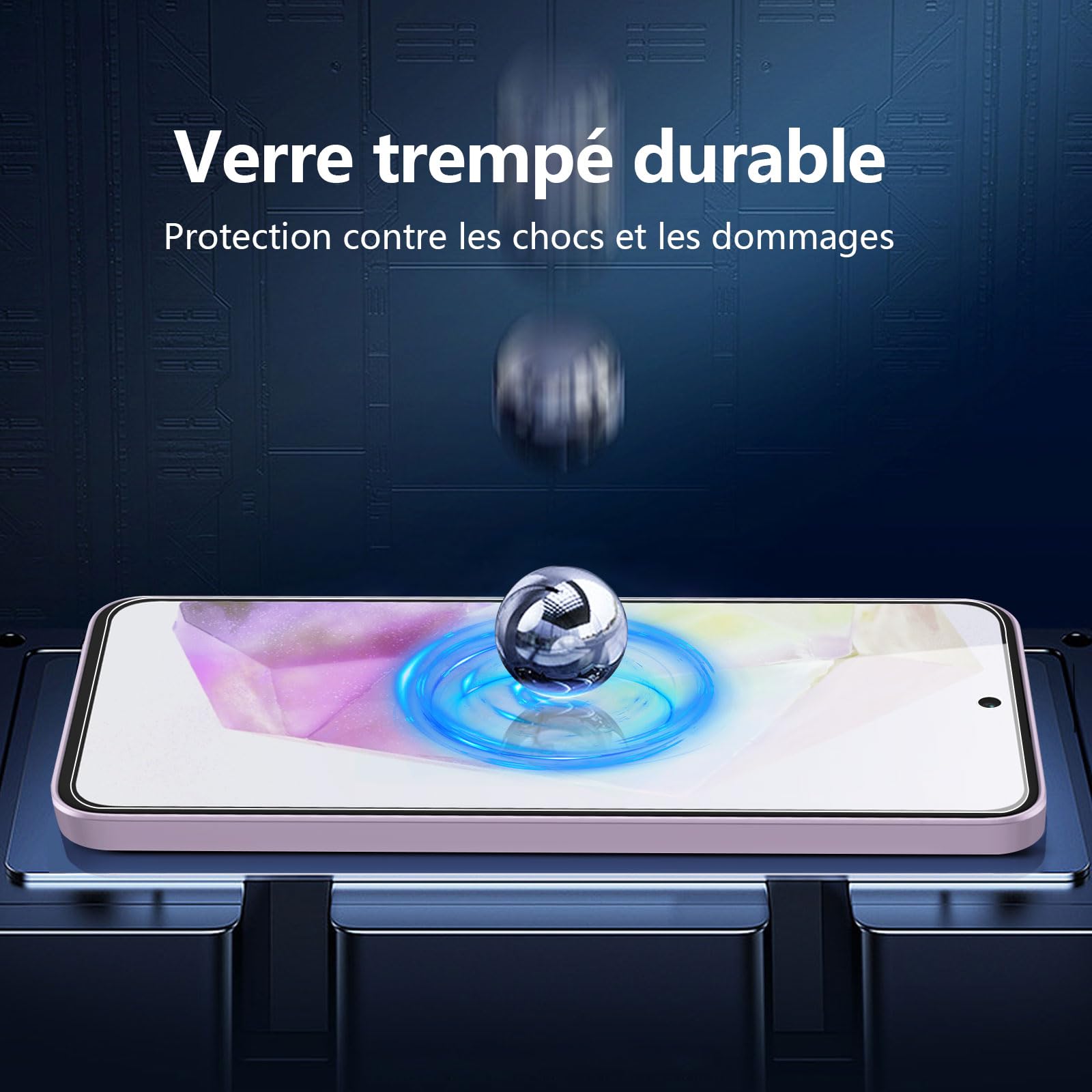 Lot de 3 protections d’écran en verre trempé pour Samsung Galaxy A56 5G et A36 5G, offrant une dureté de 9H, une installation sans bulles et une transparence HD.