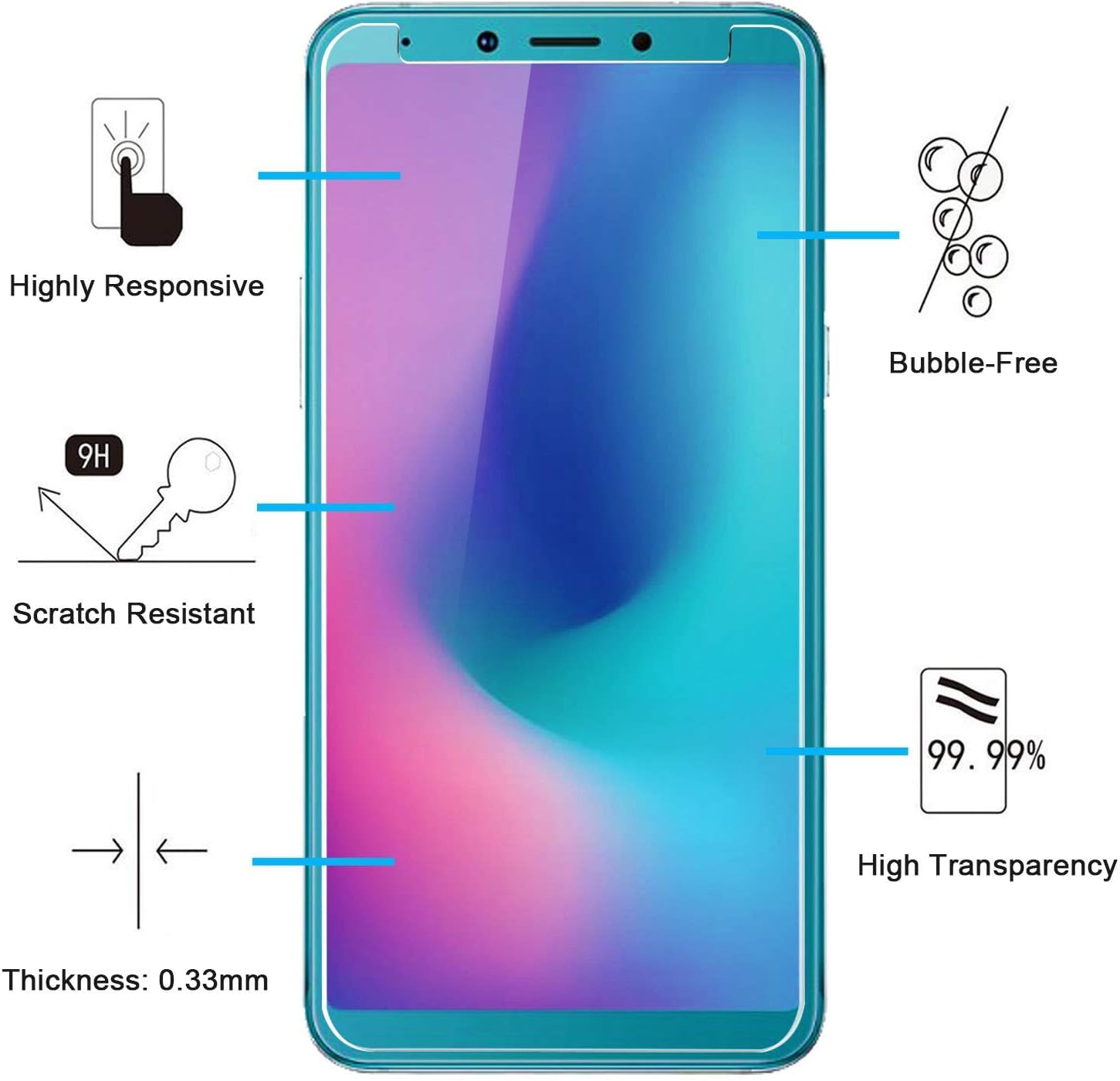• Lot de 2 Verre Trempé Samsung Galaxy A6s. Dureté 9H, résistance aux raillures. Réponse tactile améliorée et super transparent.