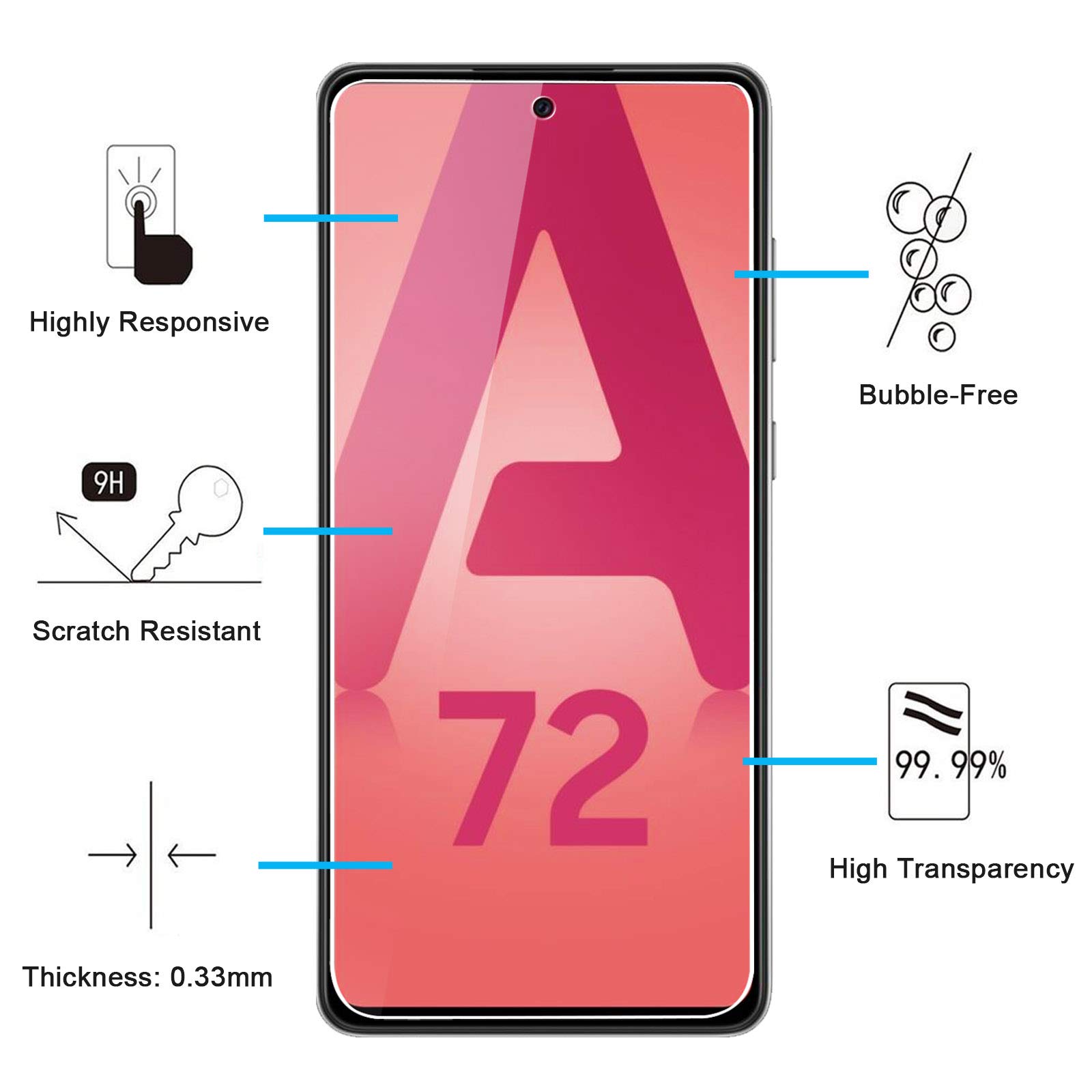 - Lot de 2 Verre Trempé Samsung Galaxy A72 / A72 5G. Très grande dureté: résiste aux égratignures jusqu’à 9H. Haute-réponse et haute transparence.