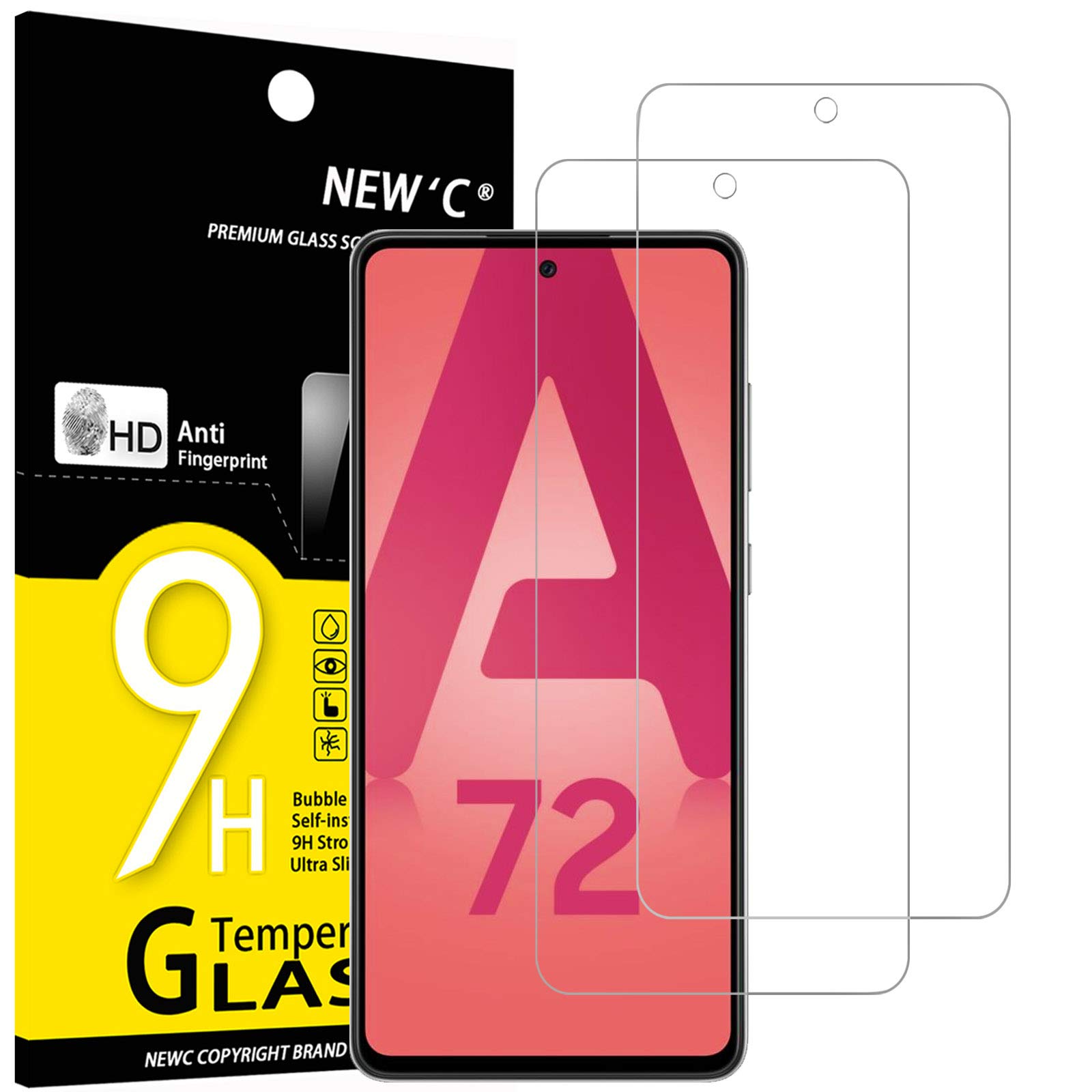 NEW’C Lot de 2, Verre Trempé pour Samsung Galaxy A72 / A72 5G, Film Protection écran efficace contre les Rayures – sans Bulles – Ultra Résistant (0,33mm HD Ultra Transparent) Dureté 9H Glass