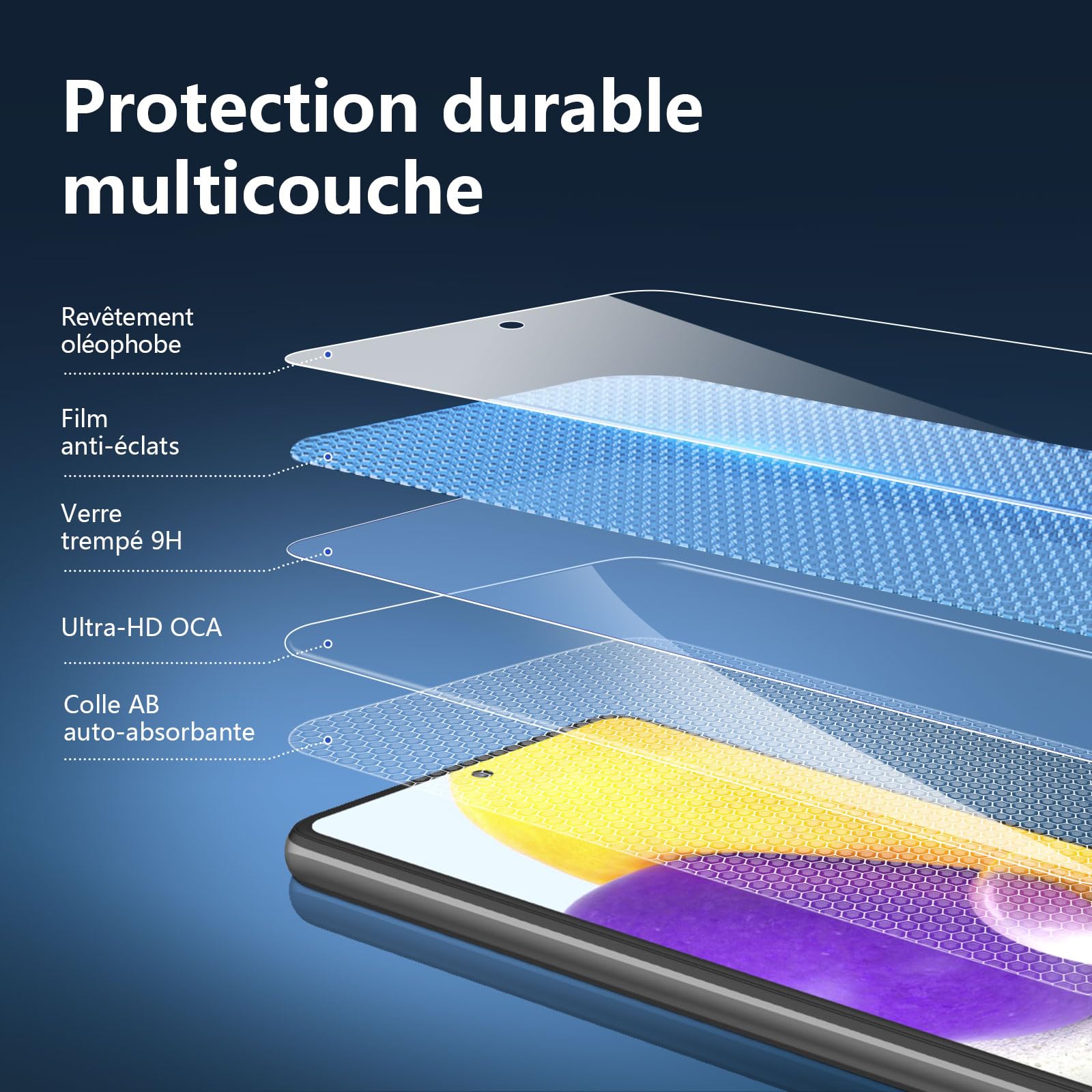 - Lot de 3 Verre Trempé Samsung Galaxy A72 / A72 5G. Très grande dureté: résiste aux égratignures jusqu’à 9H. Haute-réponse et haute transparence.