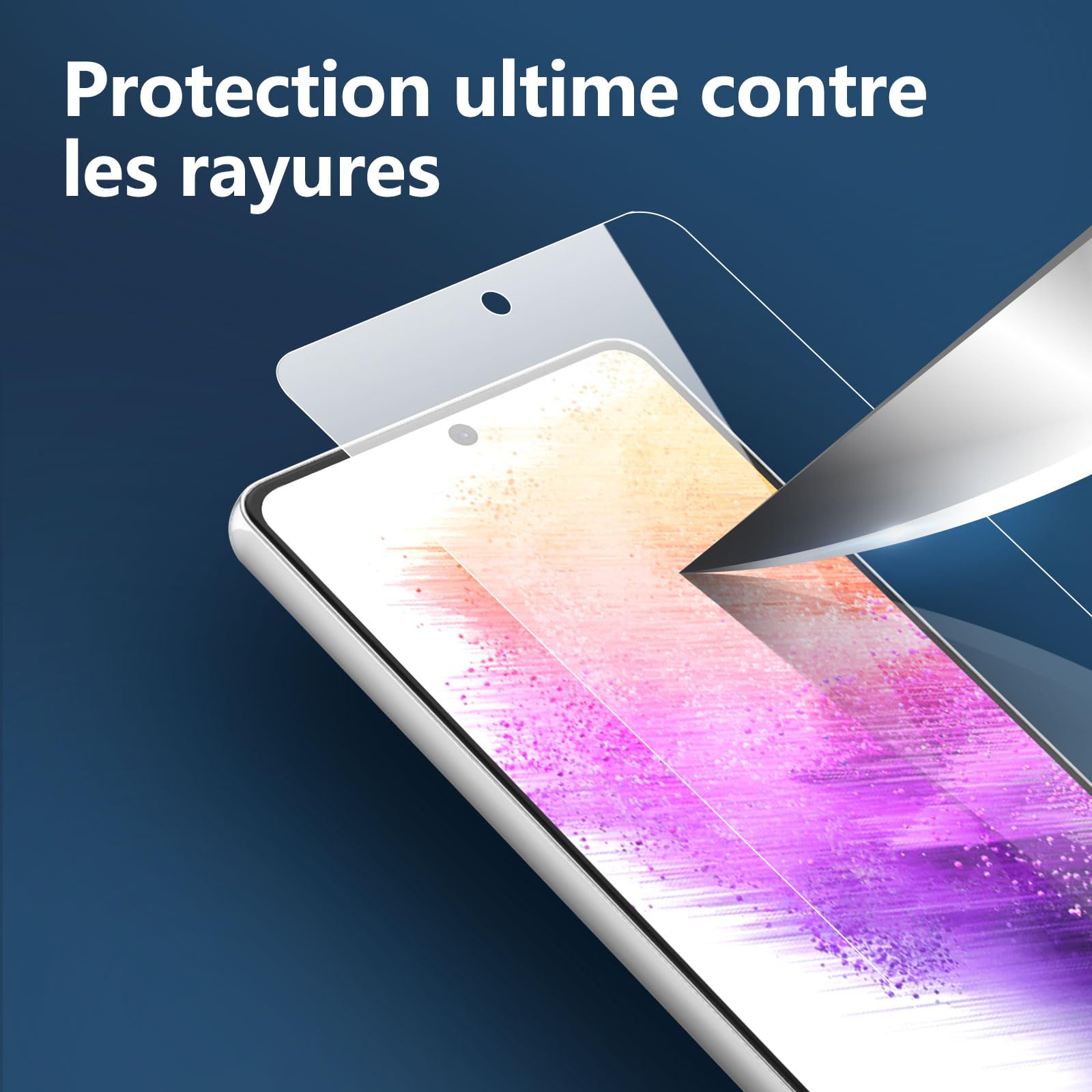 - Lot de 3 Verre Trempé Samsung Galaxy A73 5G. Très grande dureté: résiste aux égratignures jusqu’à 9H. Haute-réponse et haute transparence.