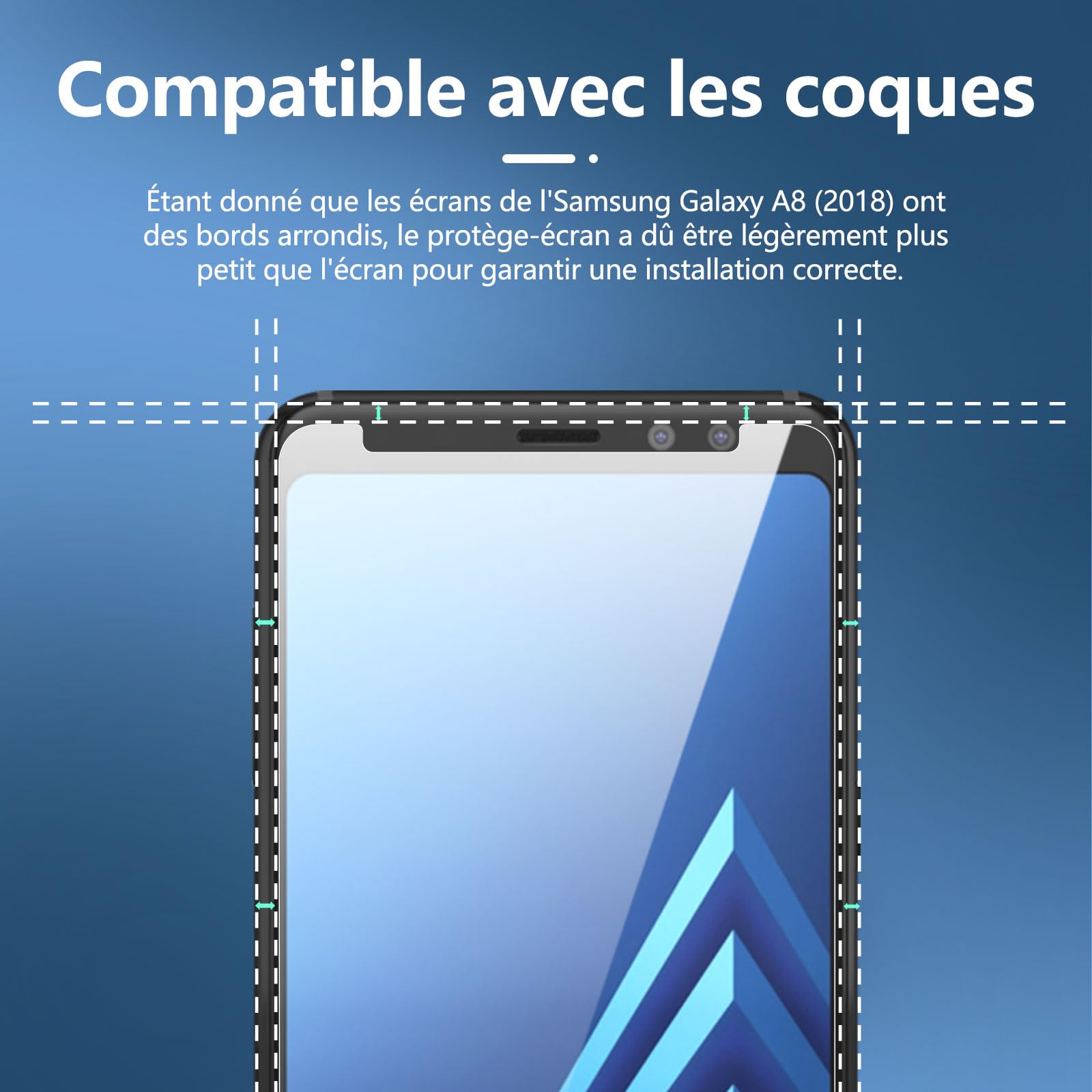 R : Oui, ce Protection d’écran Verre trempé Galaxy A8 (2018) est parfaitement compatible avec : Galaxy A8 (2018).