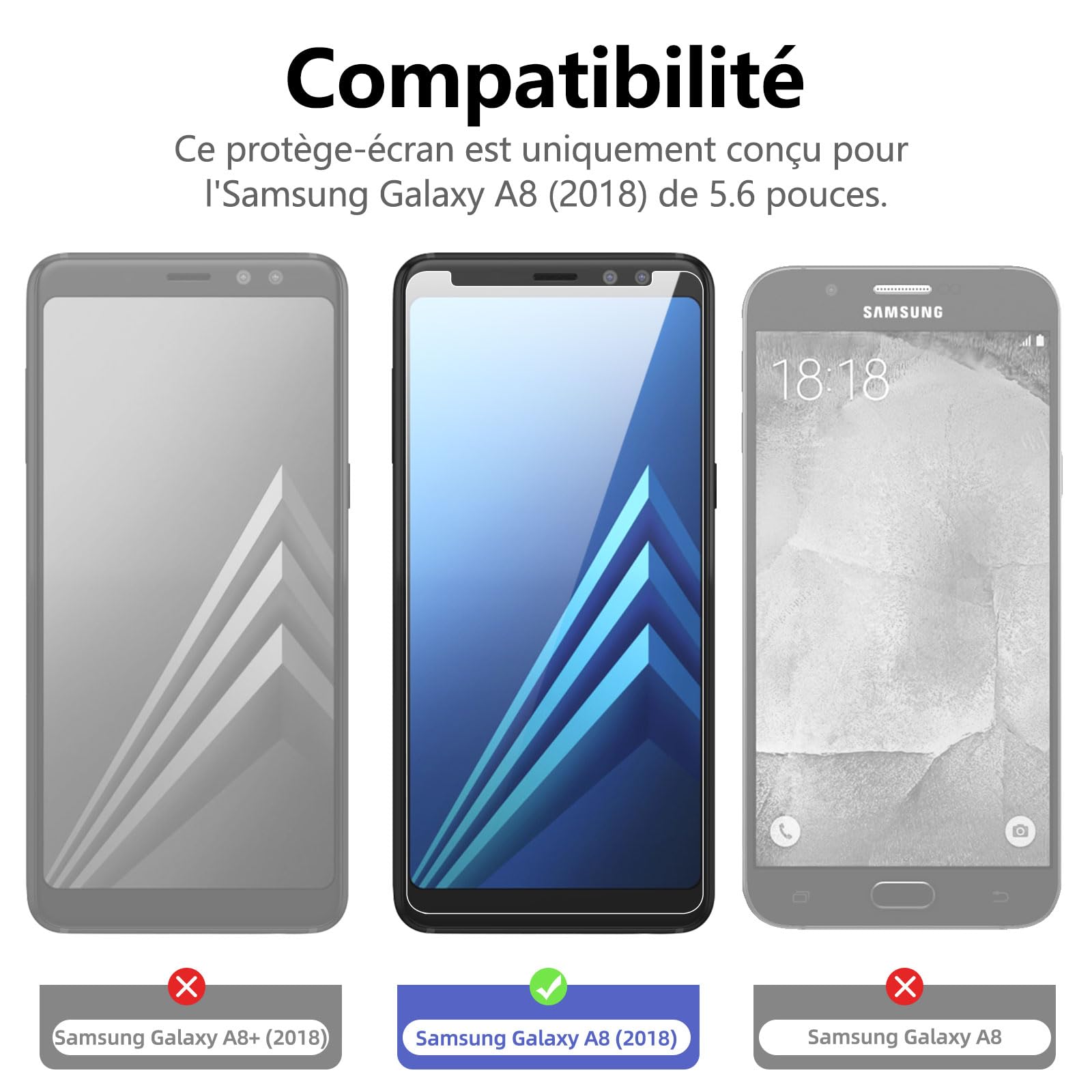 Compatibilité confirmée : Ce produit est spécialement conçu pour Galaxy A8 (2018).