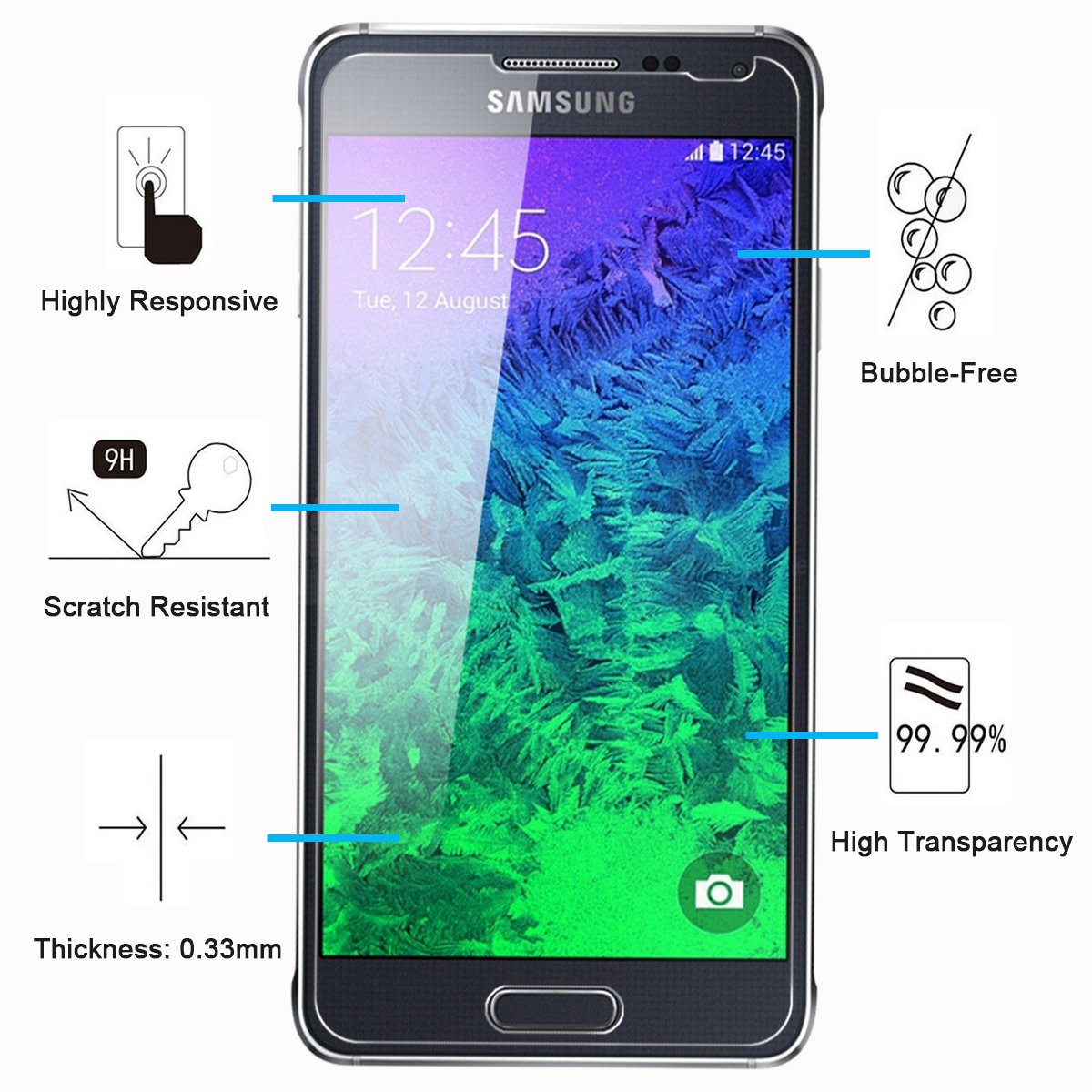 • Lot de 3 Verre Trempé Samsung Galaxy Alpha, Très grande dureté: résiste aux égratignures jusqu’à 9H . Haute-réponse et une grande transparence.