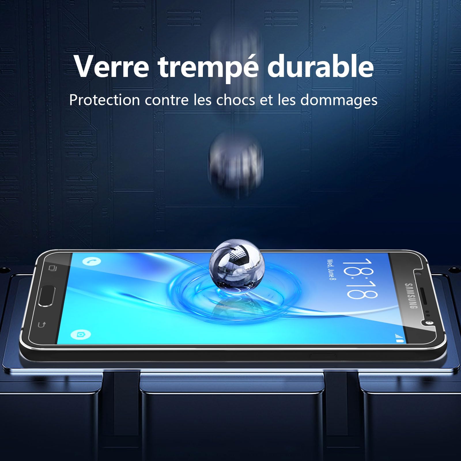 - ATTENTION: NON Compatible avec Samsung Galaxy J7 2017. Fabriqué à partir de verre trempé premium haute qualité, 0,33 mm épaisseur et des bords arrondis. Solution de protection idéale : Extrêmement dure, protège l’écran du téléphone des chocs et des dégâts.