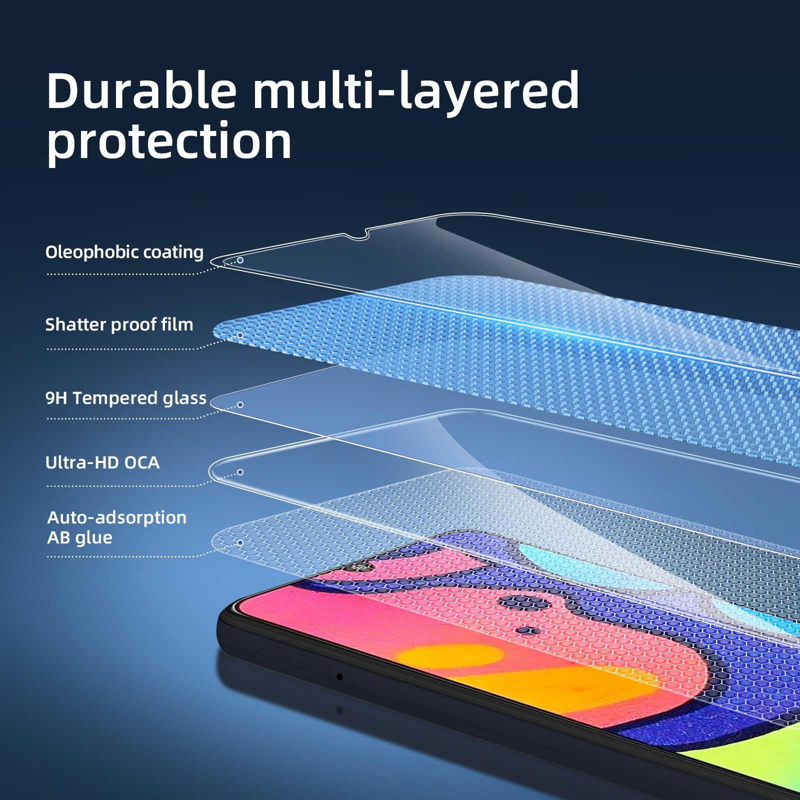 - Installation sans poussière, sans empreintes digitales, facile d’une simple pression, sans bulles.Oléophobe: il a un revêtement oléophobique qui empêche les empreintes digitales et d’autres contaminants et rend le film facile à nettoyer.