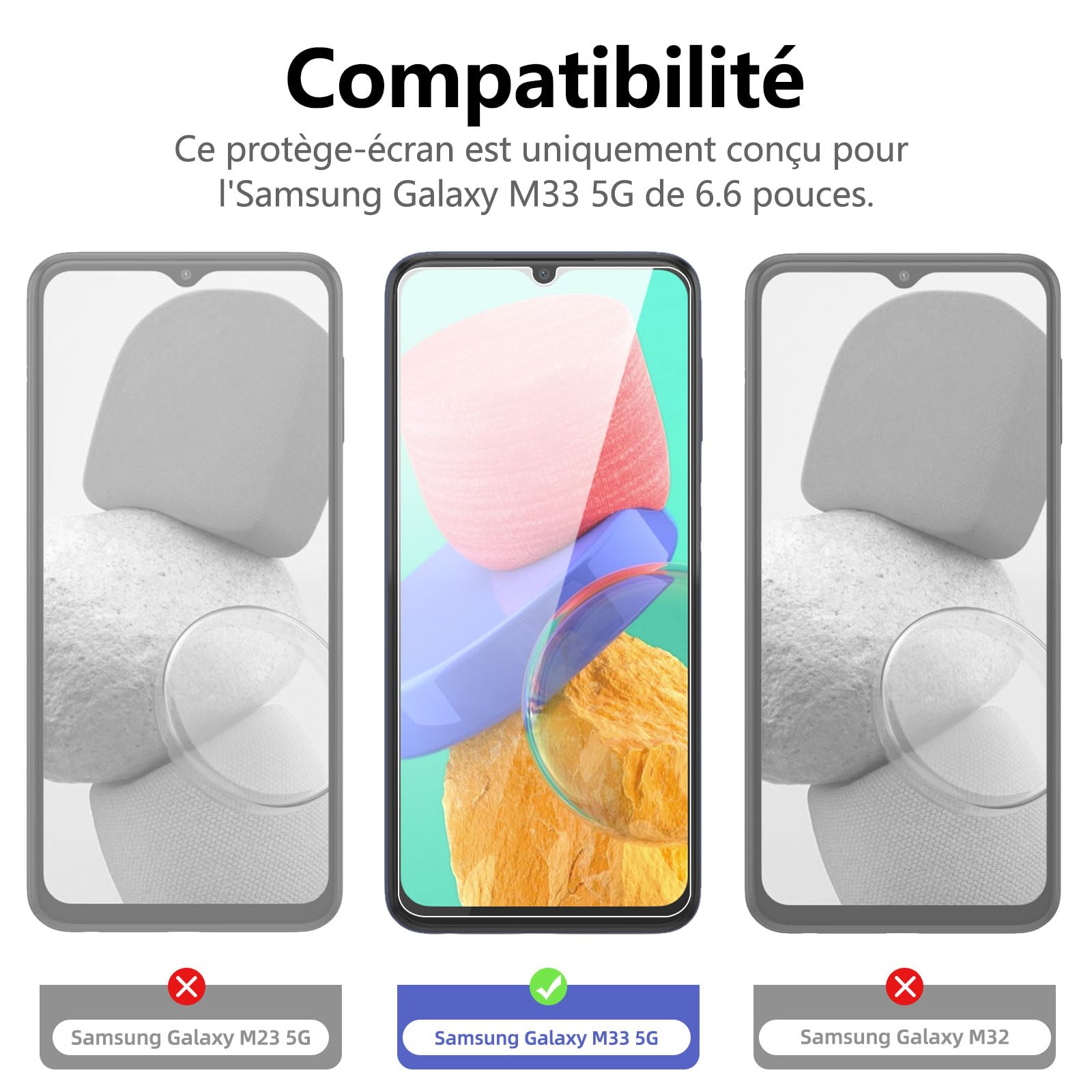 - Lot de 3 Verre Trempé Samsung Galaxy M33 5G (6.6″). Très grande dureté: résiste aux égratignures jusqu’à 9H. Haute-réponse et haute transparence.