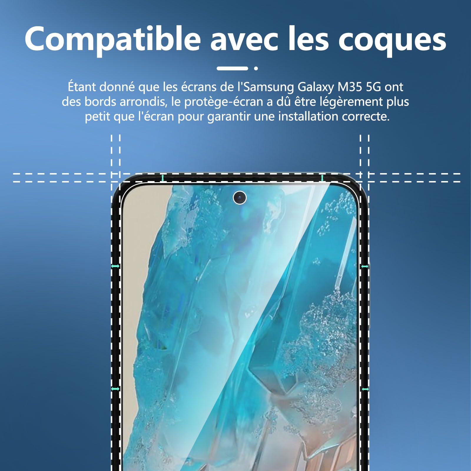 R : Oui, ce Protection d’écran Verre trempé Galaxy M35 5G / Galaxy A35 5G est parfaitement compatible avec : Galaxy M35 5G, Galaxy A35 5G.
