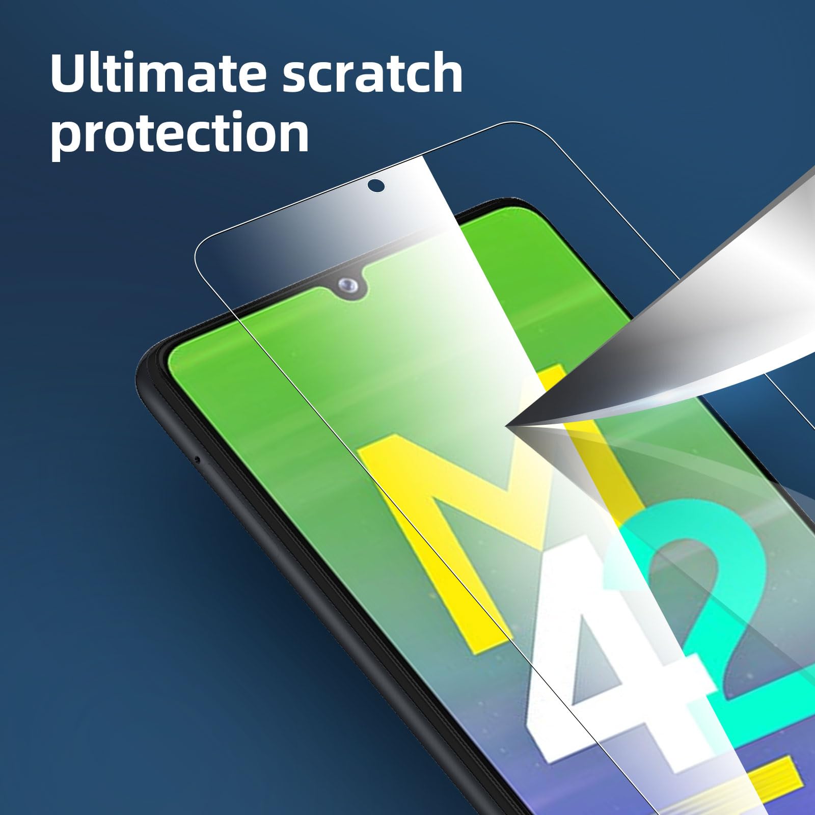 Protection d’écran en verre trempé pour Samsung Galaxy M42 5G, offrant une dureté de 9H et une transparence HD.