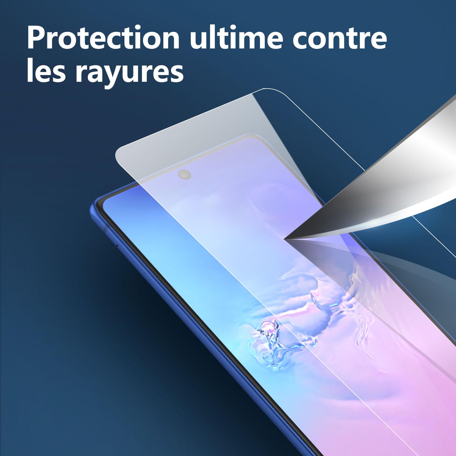 - Lot de 3 Verre Trempé Samsung Galaxy S10 Lite. Très grande dureté: résiste aux égratignures jusqu’à 9H. Haute-réponse et haute transparence.