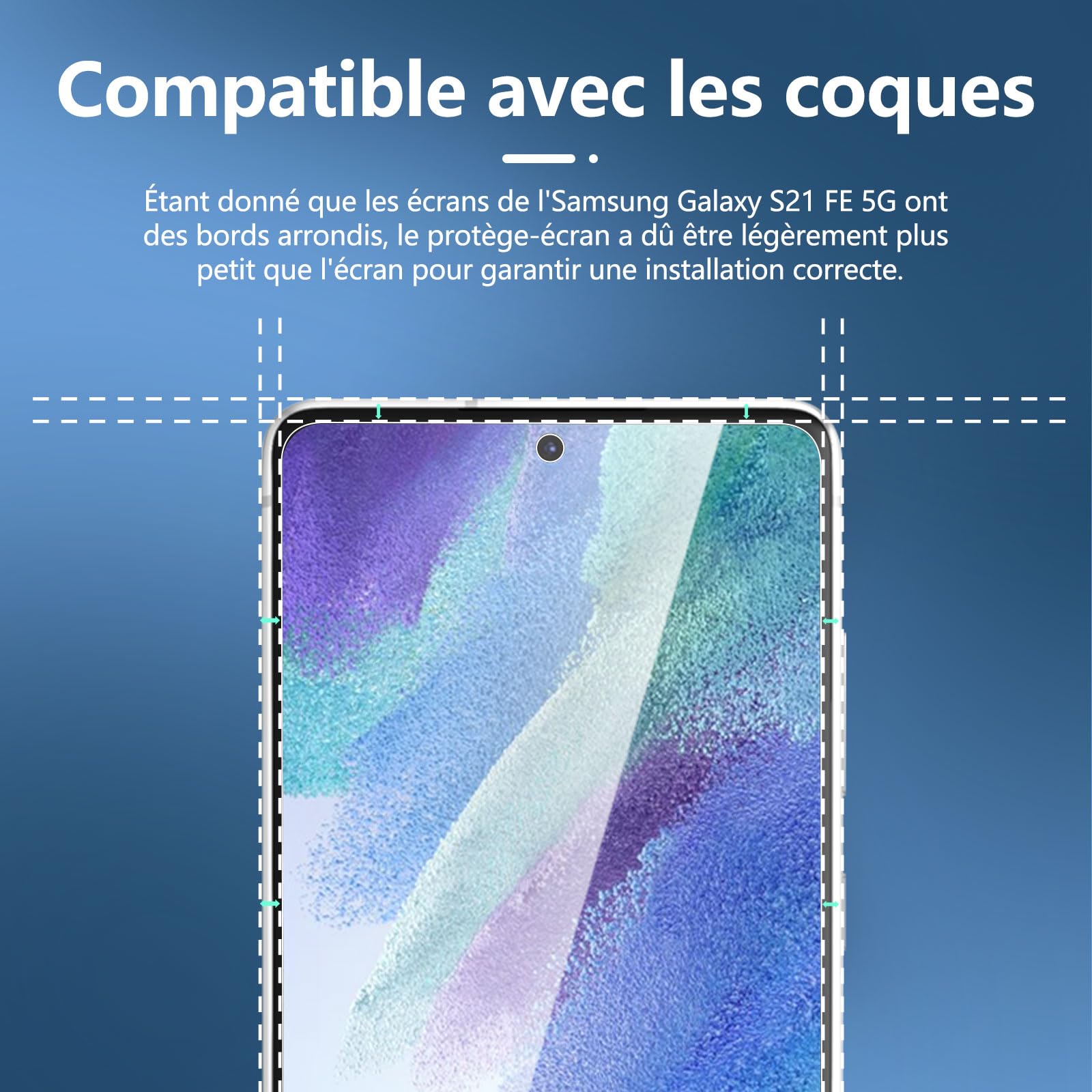 Protection d’écran en verre trempé pour Samsung Galaxy S21 FE 5G, offrant une dureté de 9H et une transparence HD ultra claire.