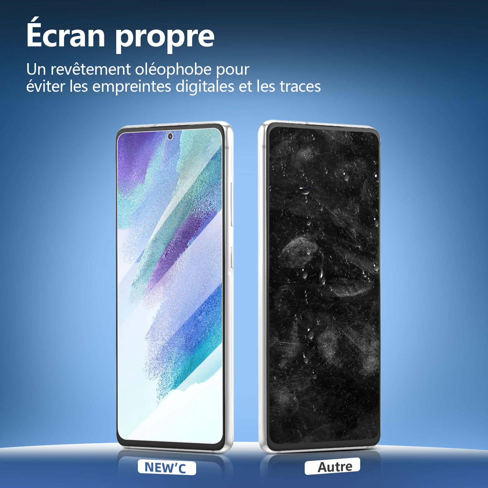 NEW’C Lot de 3, Verre Trempé pour Samsung Galaxy S21 FE 5G, Film Protection écran -sans Bulles d’air -Ultra Résistant (0,33mm HD Ultra Transparent) Dureté 9H Glass