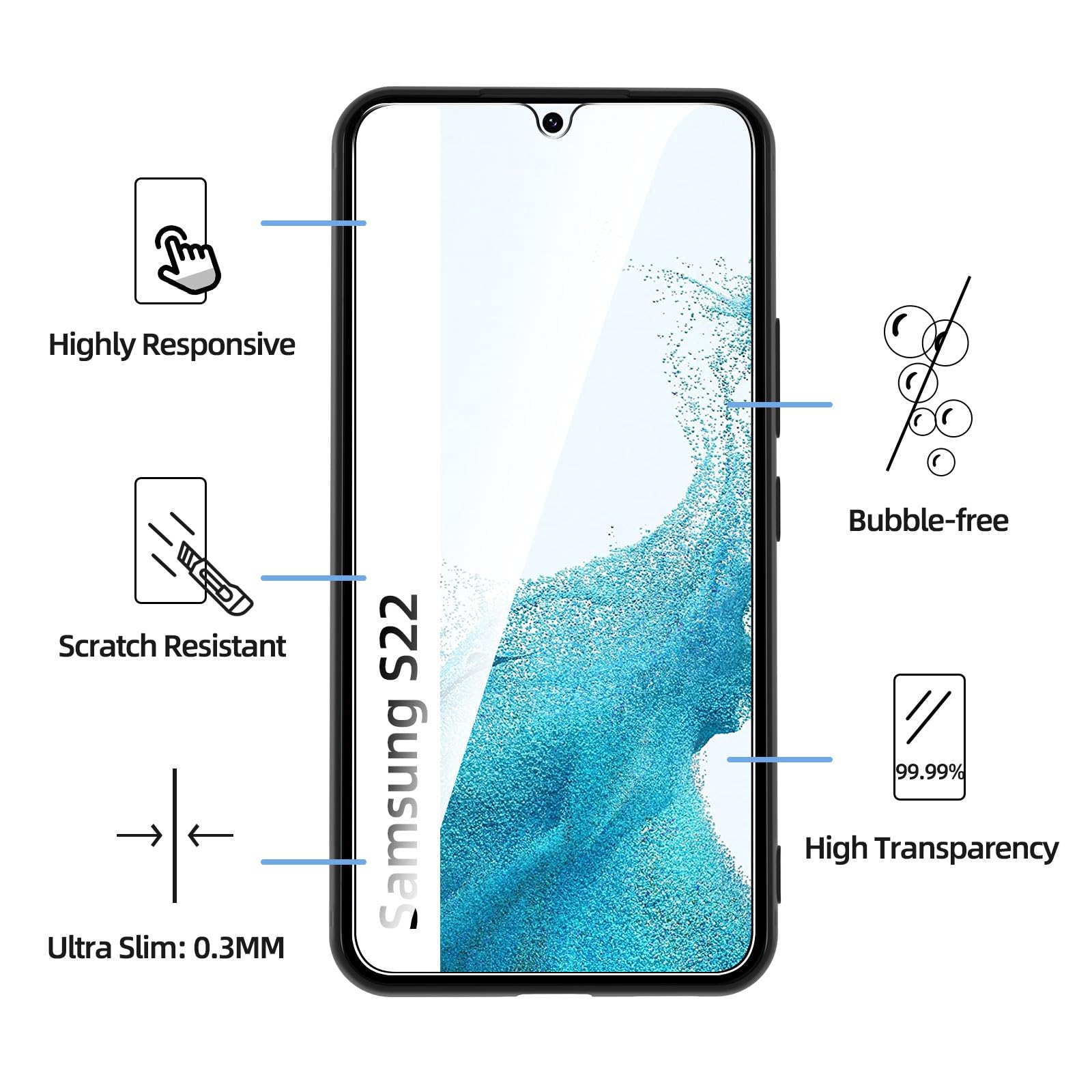 - Le lot contient 2 pièces de protection d’écran en verre trempé pour Samsung Galaxy S22 5G et une coque noir pour Samsung Galaxy S22 5G. Procure une protection maximale.
