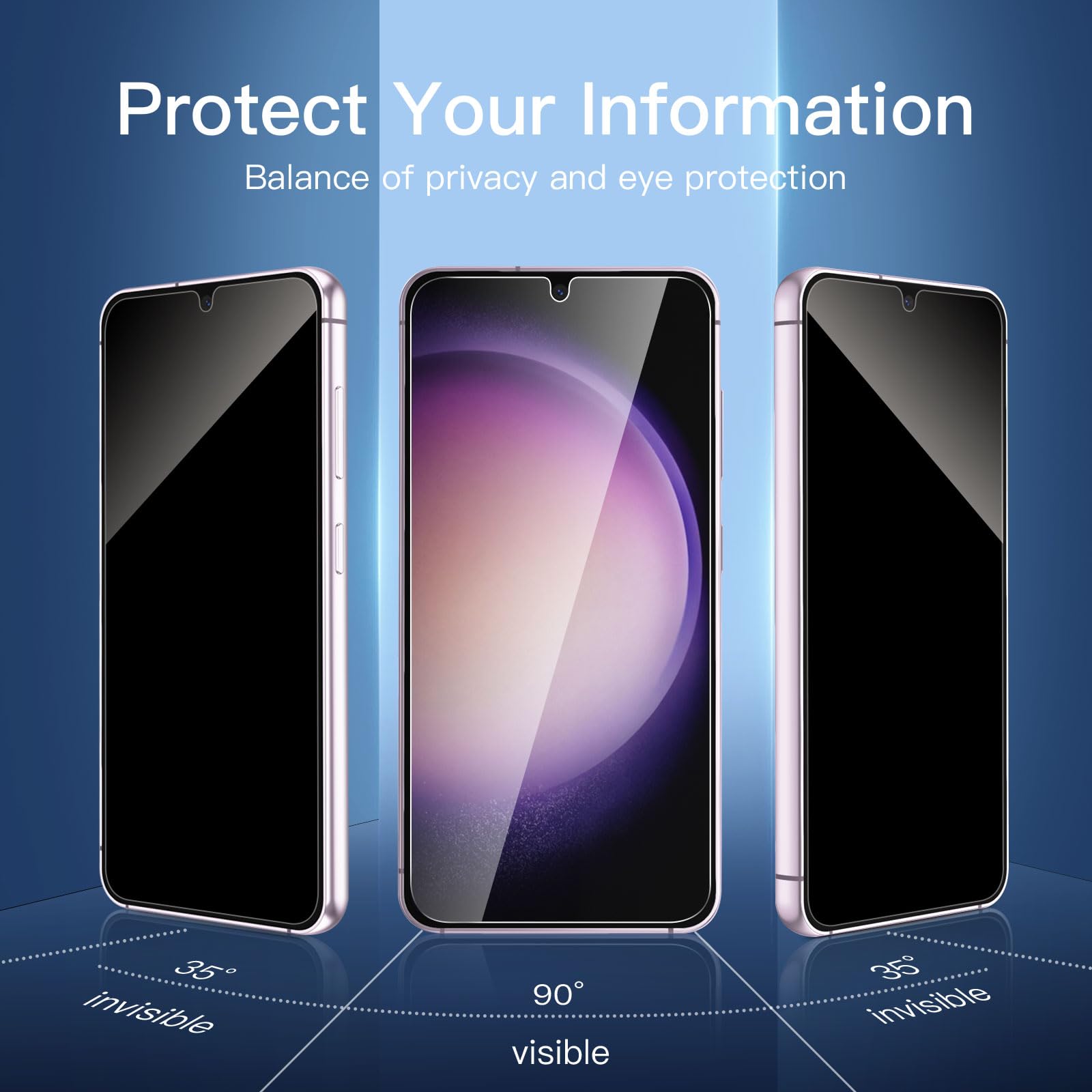 - Lot de 3 Verres Trempés Anti-Espion pour Samsung Galaxy S23. Dureté 9H, résistance aux raillures, Équilibre entre la vie privée et la protection des yeux.
