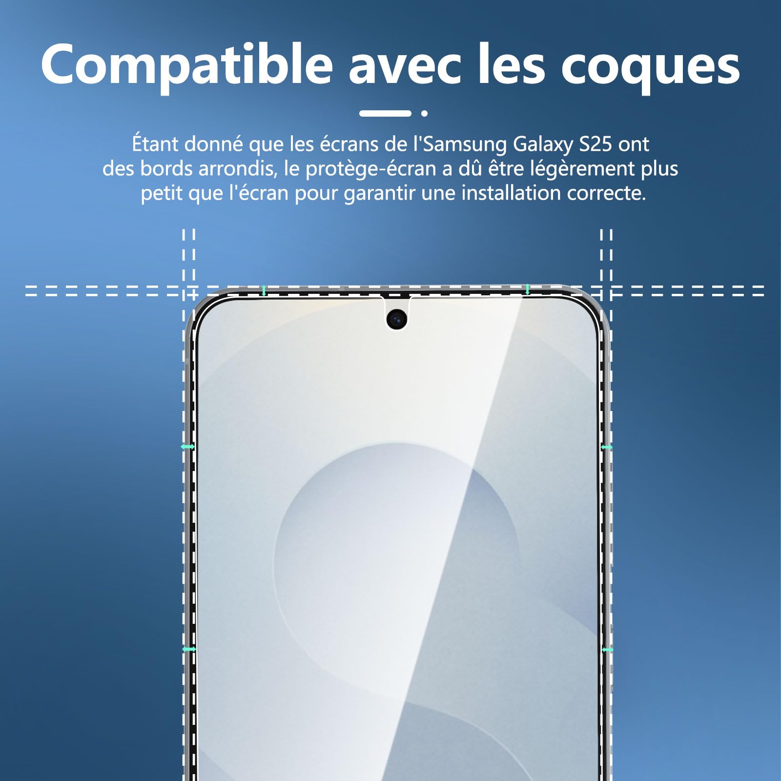 R : Oui, ce Protection d’écran Verre trempé Galaxy S25 est parfaitement compatible avec : Galaxy S25.
