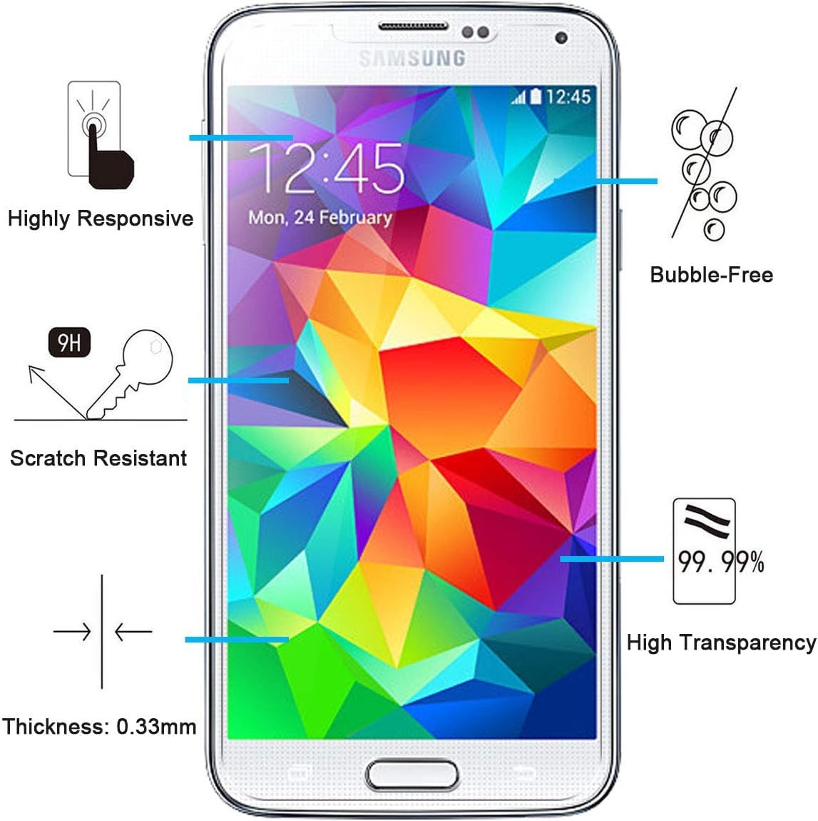 - ATTENTION: NON Compatible avec Samsung Galaxy S5 Mini. Fabriqué en verre trempé premium haute qualité avec 0,33 mm épaisseur avec les bordures arrondis, Solution idéale d’anti-casse: Extrêmement haute dureté, protège l’écran du téléphone des chocs et des dommages accidentels.