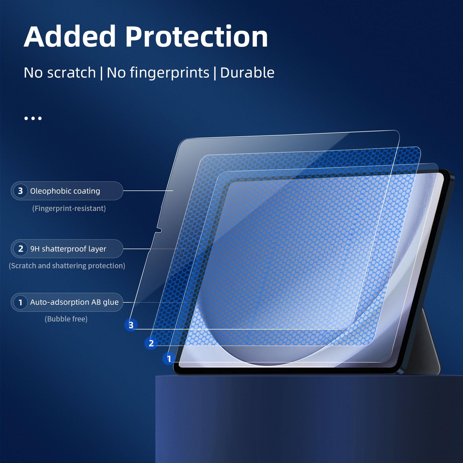 - Sans poussière sans traces de doigts un bouton-poussoir trop facile l’installation sans bulle. Oléophobe: il a un revêtement oléophobique qui empêche les empreintes digitales et d’autres contaminants et rend le film facile à nettoyer.