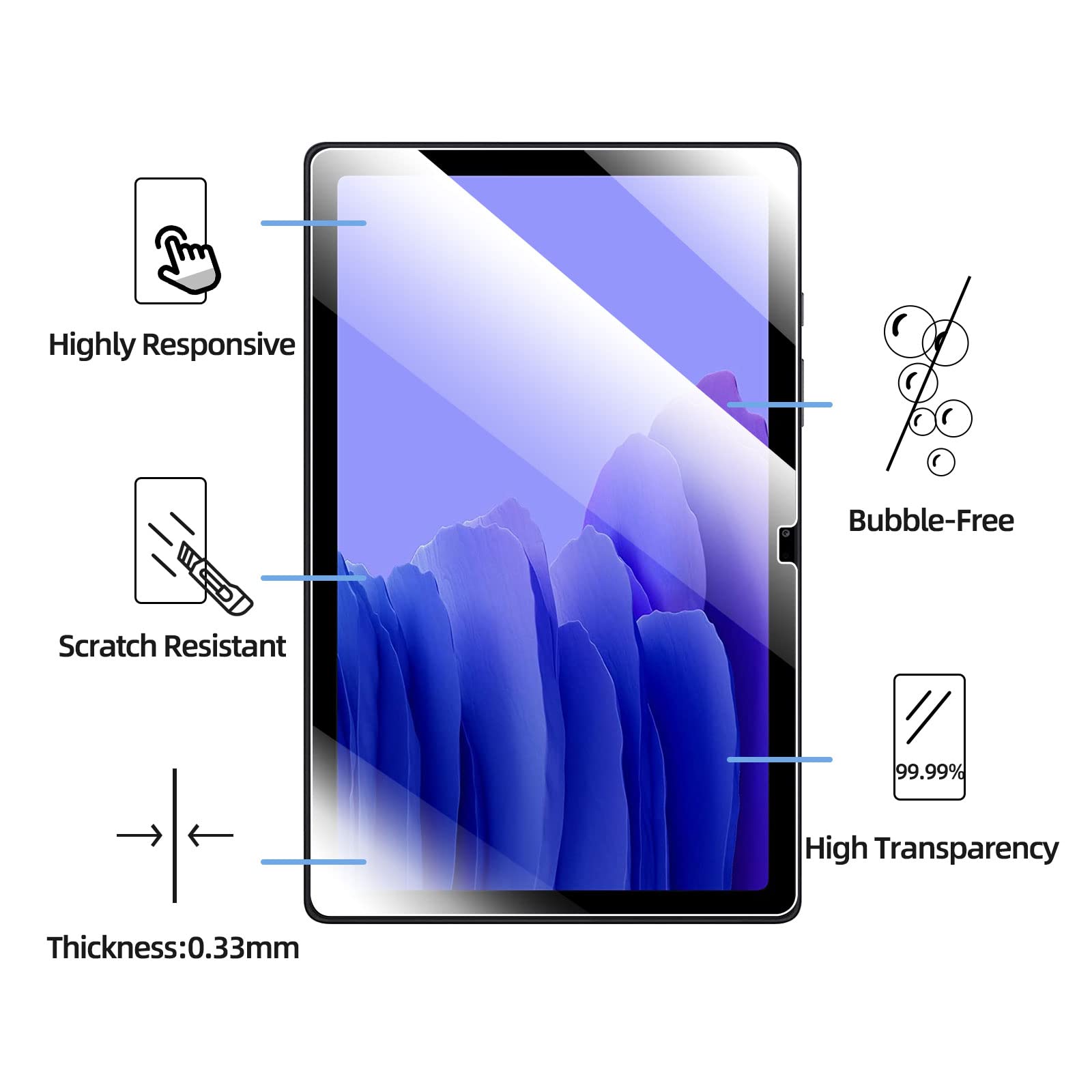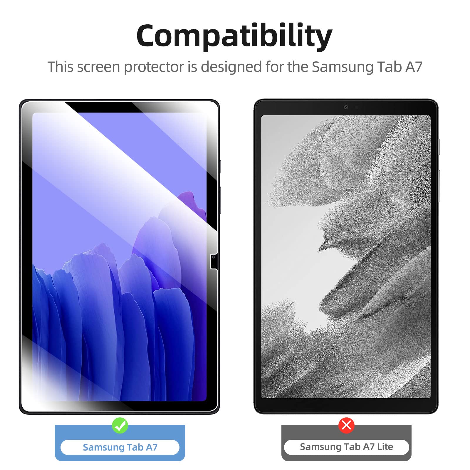 - Lot de 2 Verre Trempé Samsung Galaxy Tab A7 2020 (10,4 Pouces, SM-T500 / T505 / T507). Très grande dureté: résiste aux égratignures jusqu’à 9H. Haute-réponse et haute transparence.
