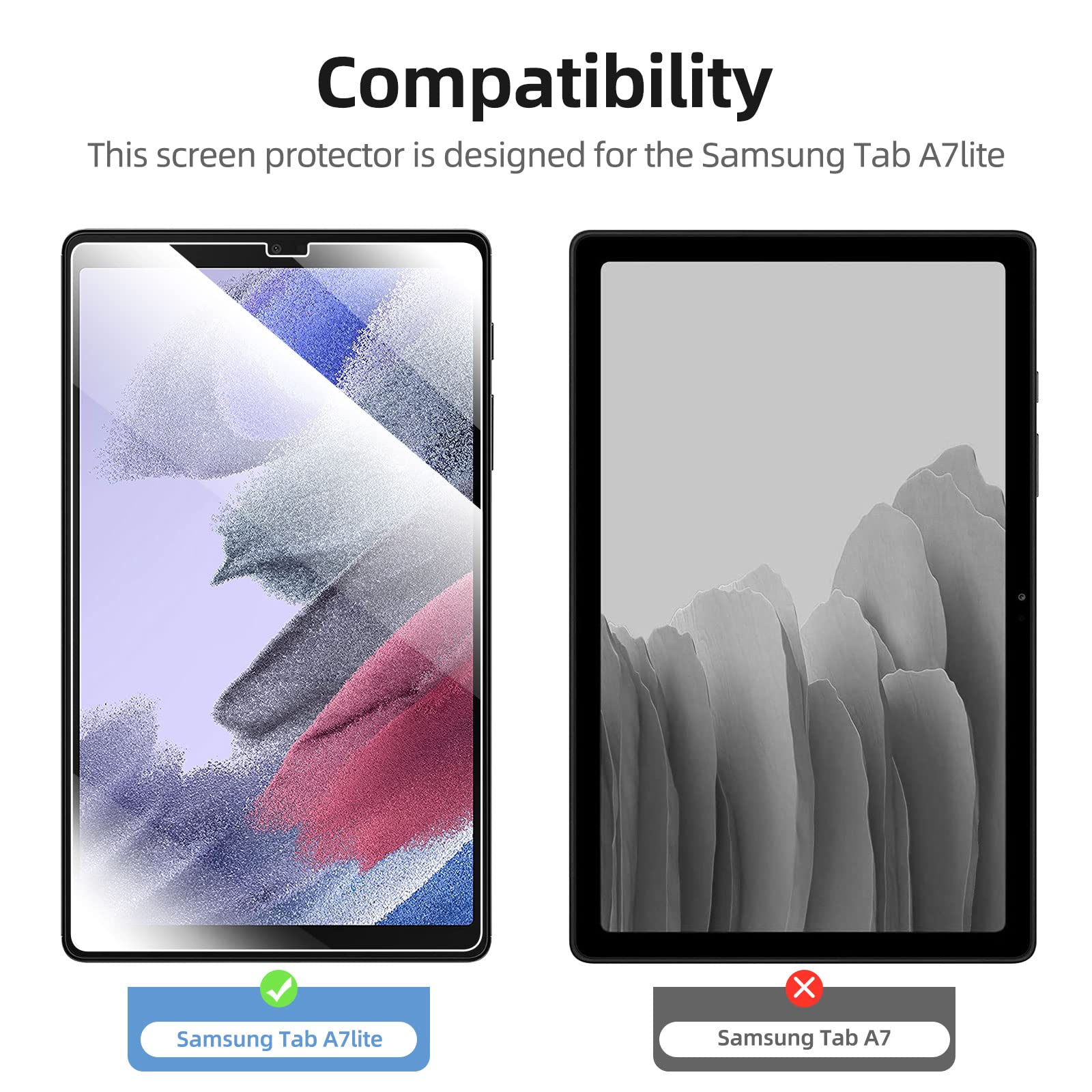 - Lot de 2 Verre Trempé Samsung Galaxy Tab A7 Lite 8.7 Pouces 2021. Très grande dureté: résiste aux égratignures jusqu’à 9H. Haute-réponse et haute transparence.