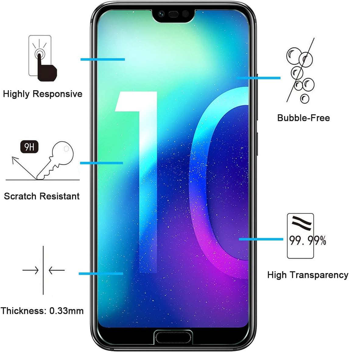 - Lot de 3 Verre Trempé Huawei Honor 10 Très grande dureté: résiste aux égratignures jusqu’à 9H . Haute-réponse et une grande transparence.