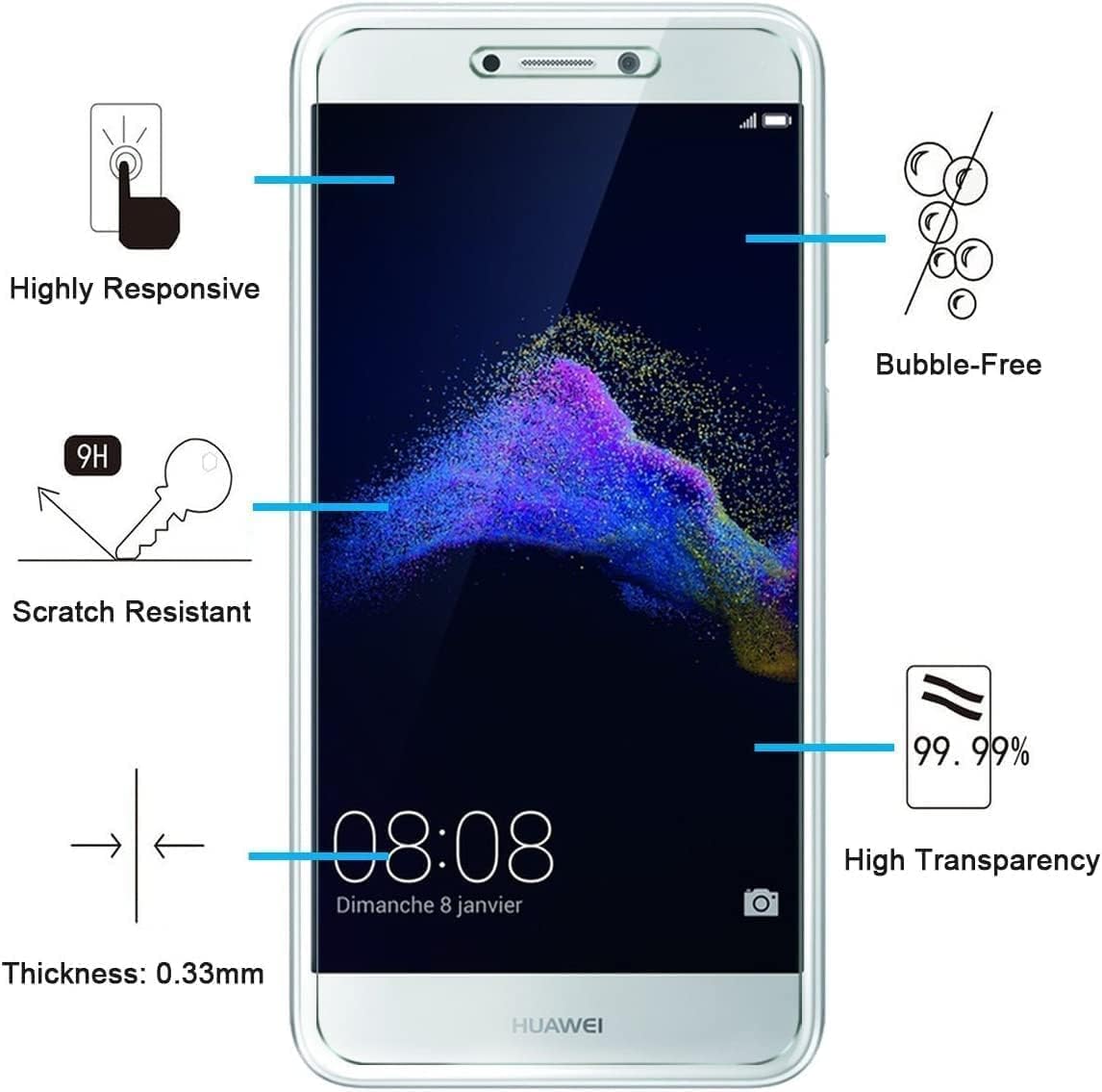 - Lot de 3 Verre Trempé Huawei P8 Lite 2017, Très grande dureté: résiste aux égratignures jusqu’à 9H . Haute-réponse et une grande transparence.