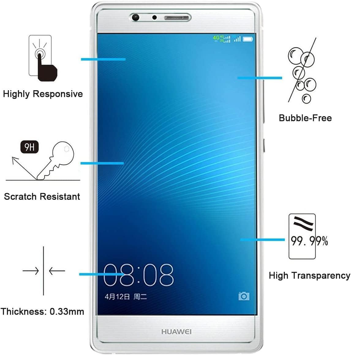- Lot de 2 Verre Trempé Huawei G9 (P9) Très grande dureté: résiste aux égratignures jusqu’à 9H . Haute-réponse et une grande transparence.
