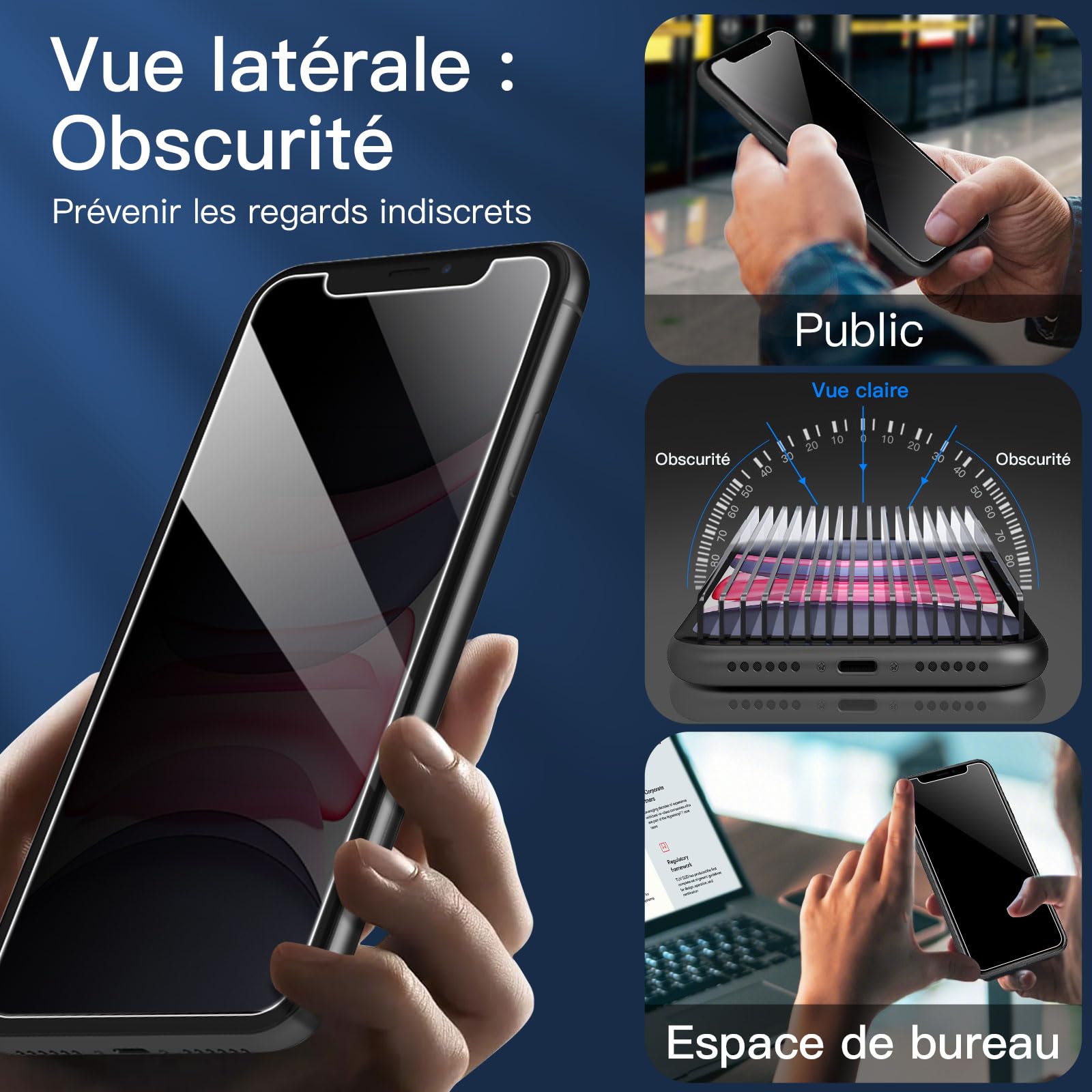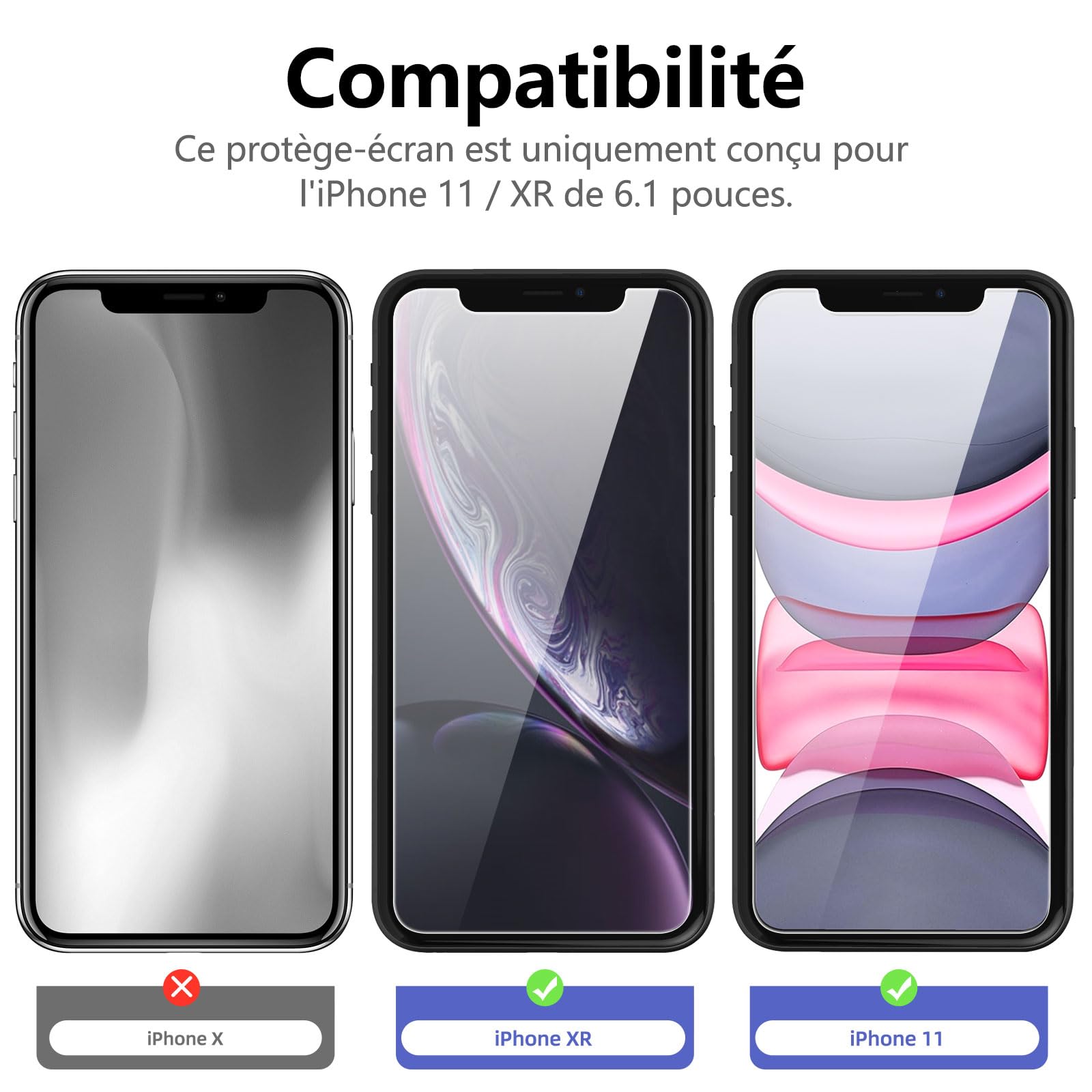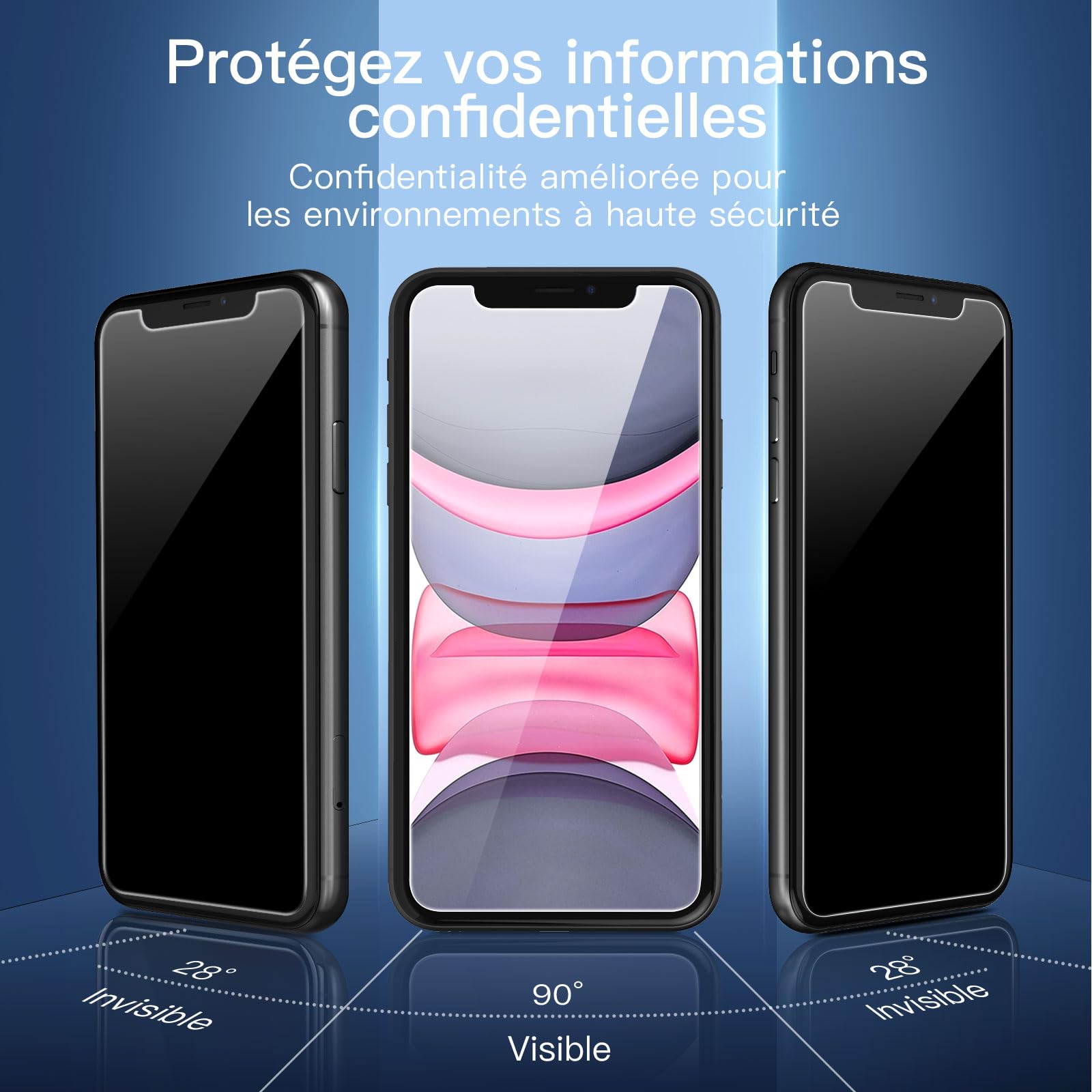 - Lot de 3 Verres Trempés Anti-Espion pour iPhone 11/iPhone XR. Dureté 9H, résistance aux raillures, Confidentialité améliorée pour les environnements à haute sécurité.
