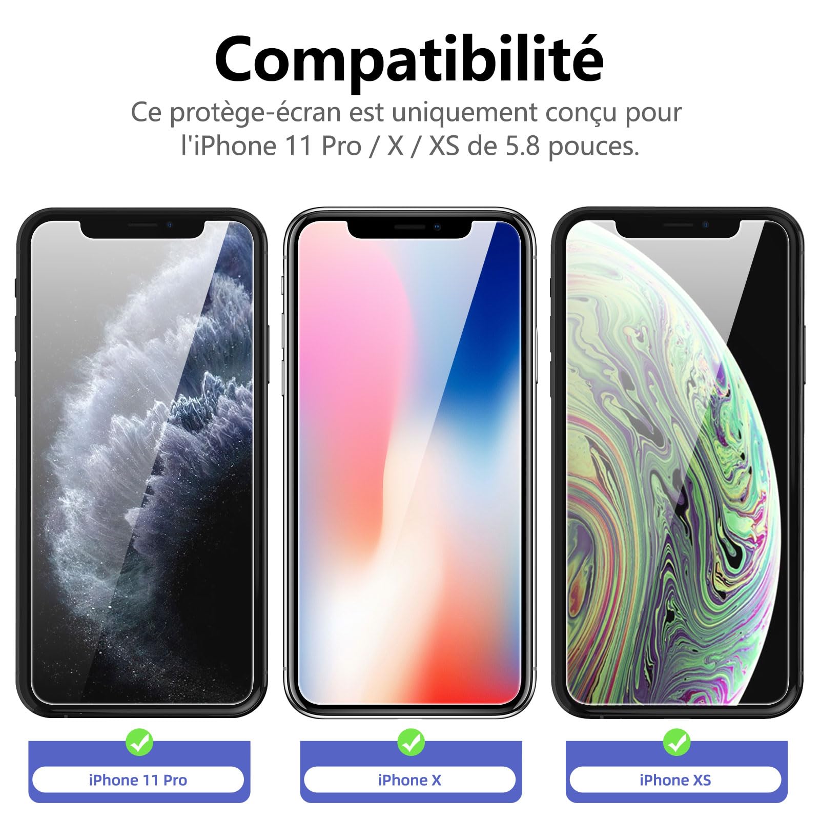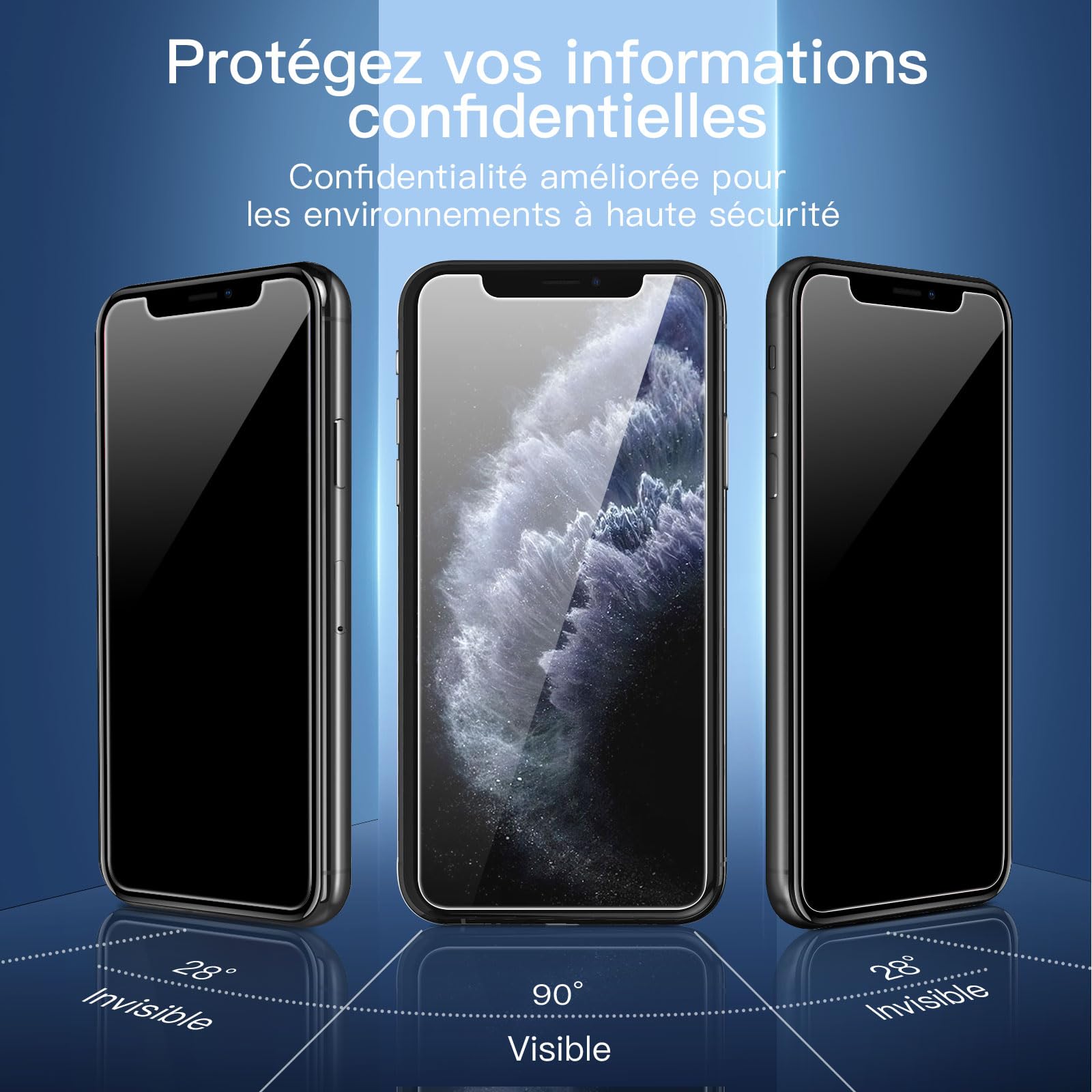 - Lot de 3 Verres Trempés Anti-Espion pour iPhone 11 Pro/iPhone X/iPhone XS (5,8″). Dureté 9H, résistance aux raillures, Confidentialité améliorée pour les environnements à haute sécurité.
