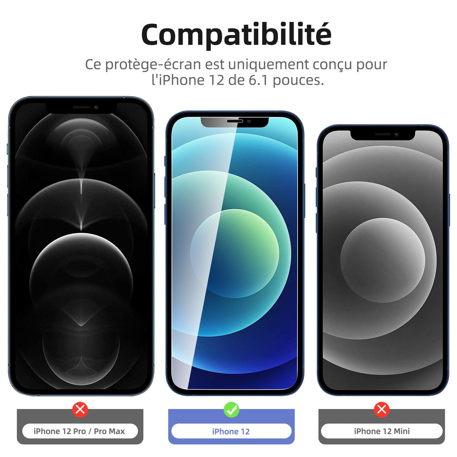 • Contenu : 2* Verre Trempé écran Protecteur et 2* Caméra Lentille Protecteur pour iPhone 12. Une double protection avant et arrière du téléphone