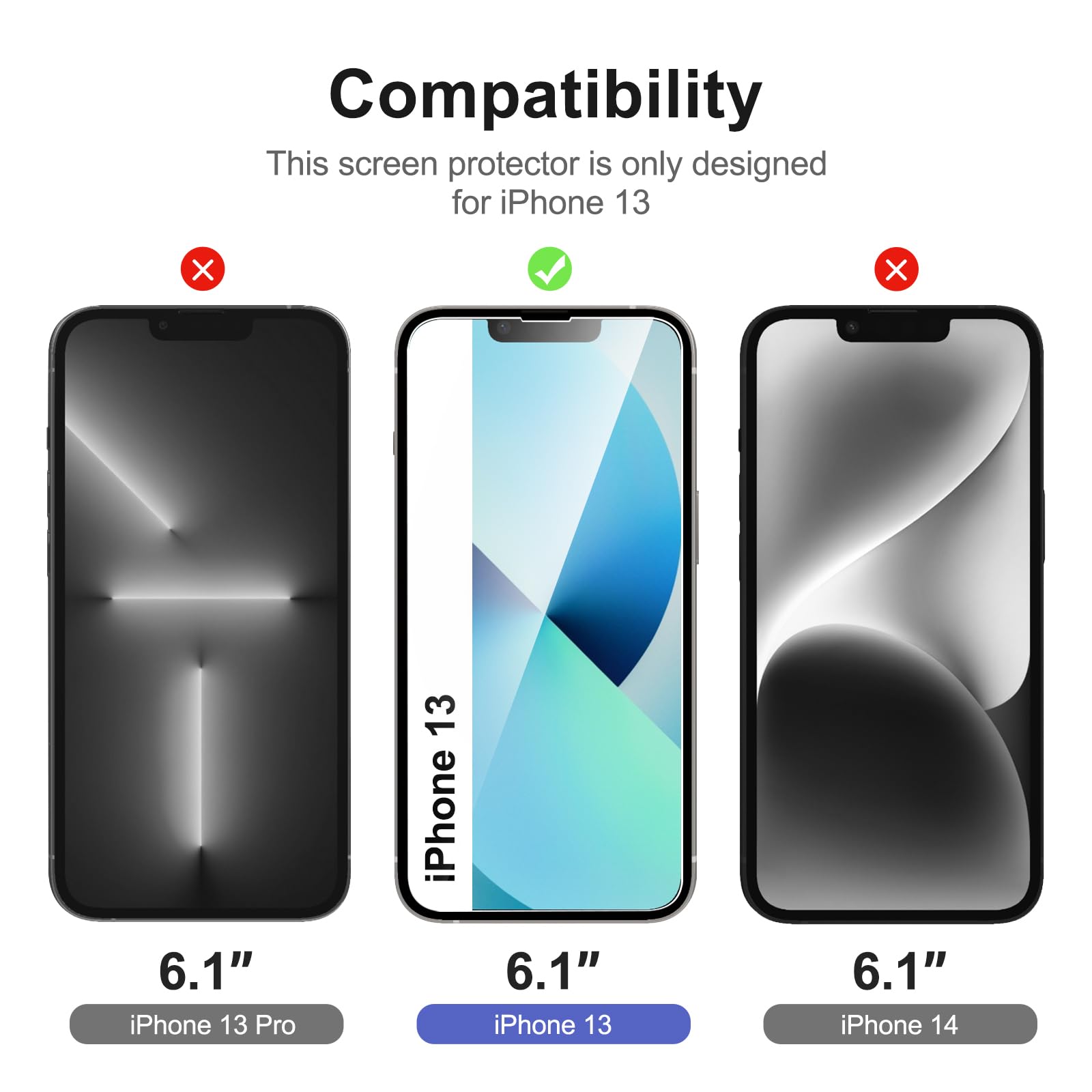 • Contenu : 3* Verre Trempé écran Protecteur, 3* Caméra Lentille Protecteur pour iPhone 13 (6,1 Pouces) et un outil d’installation facile. Une double protection avant et arrière du téléphone.