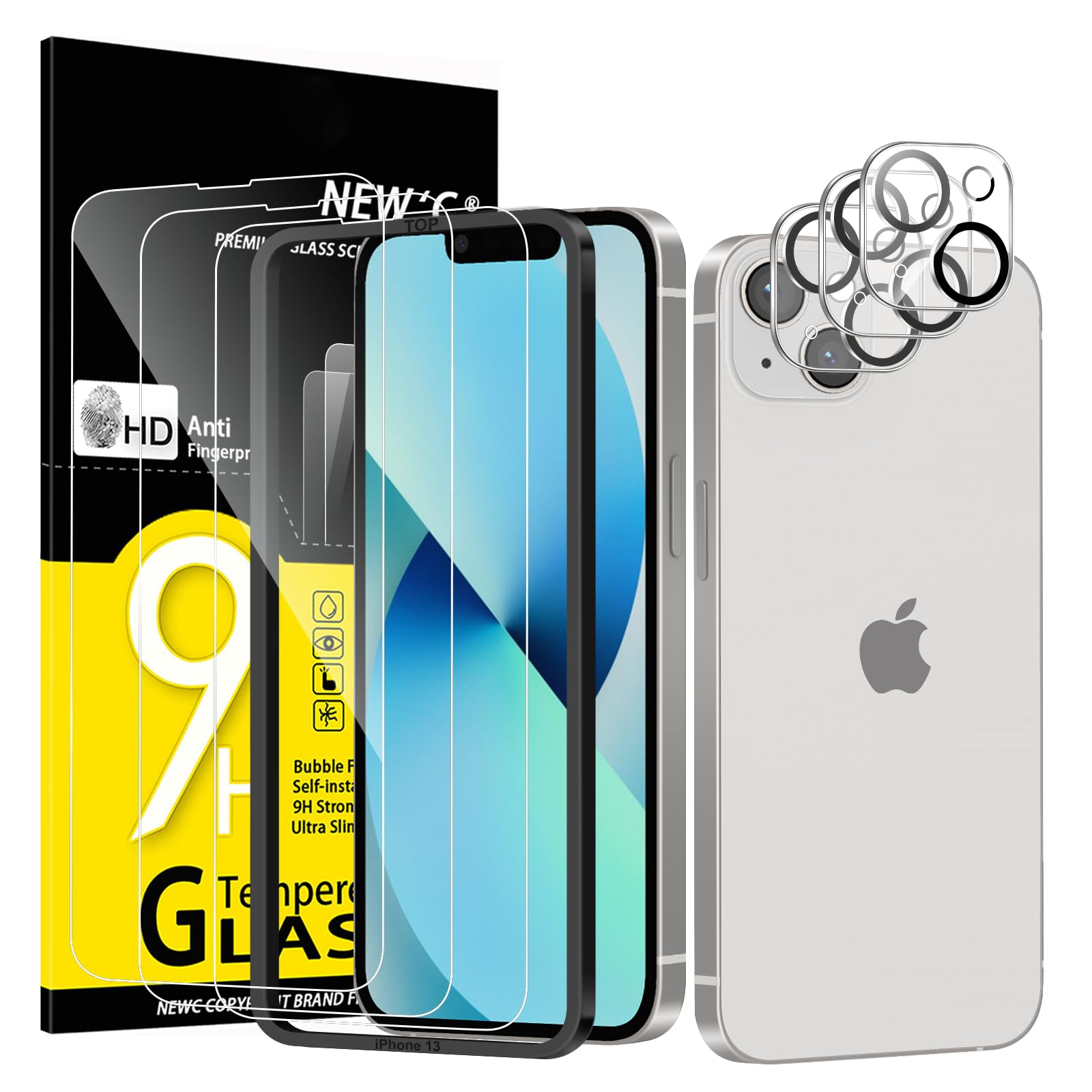 NEW’C Kit de 6, 3 x Verre Trempé pour iPhone 13 (6,1 Pouces) et 3 x Protection Caméra Arrière – Kit Outil d’Installation Facile – Anti Rayures – Ultra Résistant-HD Transparent